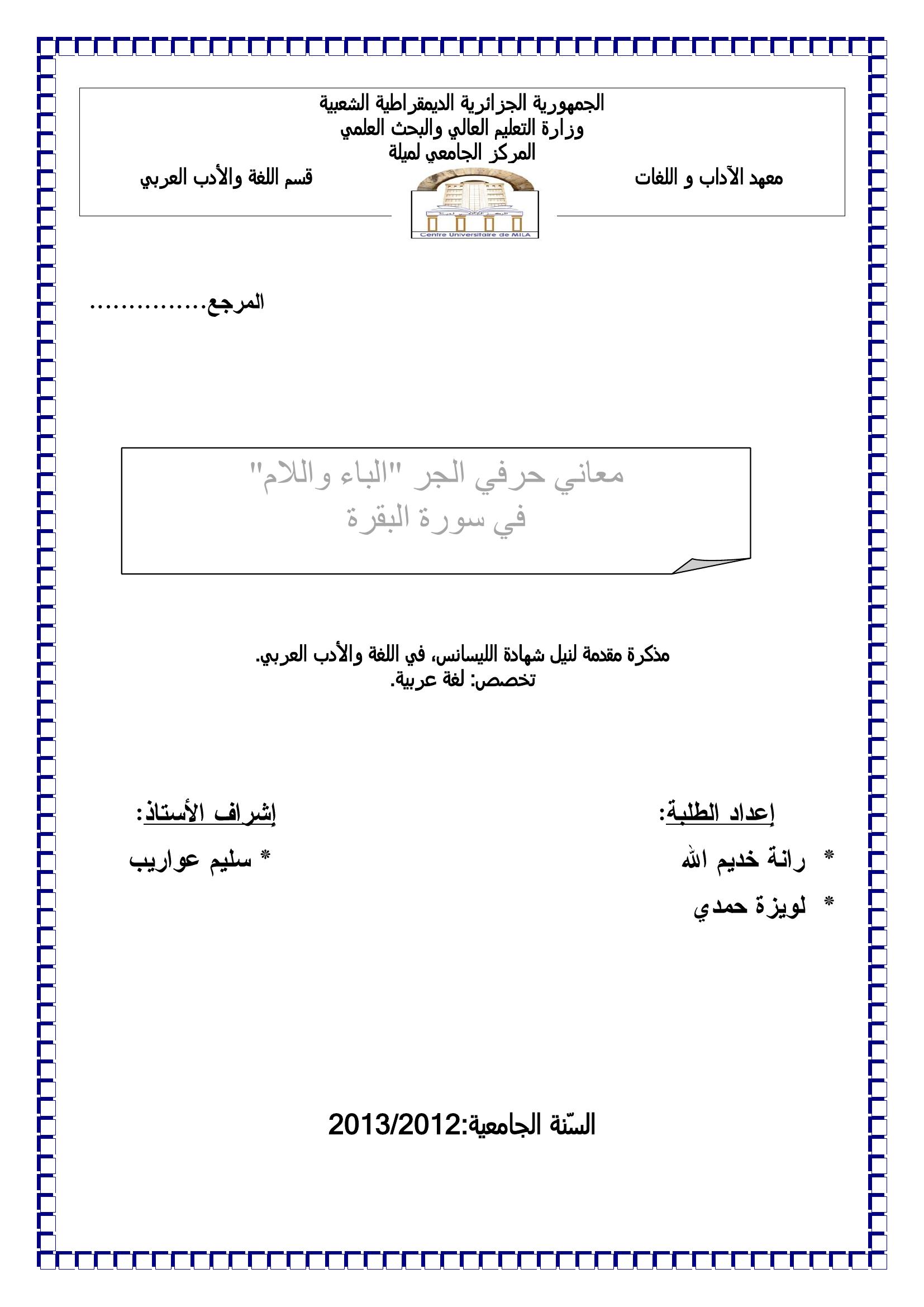 رانة خديم الله et al. (2013). معاني حرف الجر " الباء واللام " في سورة البقرة.