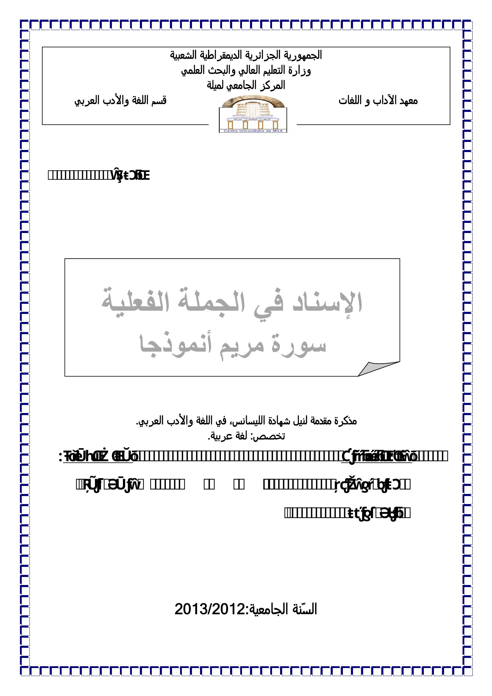 مريم بوعفينة et al. (2013). الإسناد في الجملة الفعلية سورة مريم نموذجا.