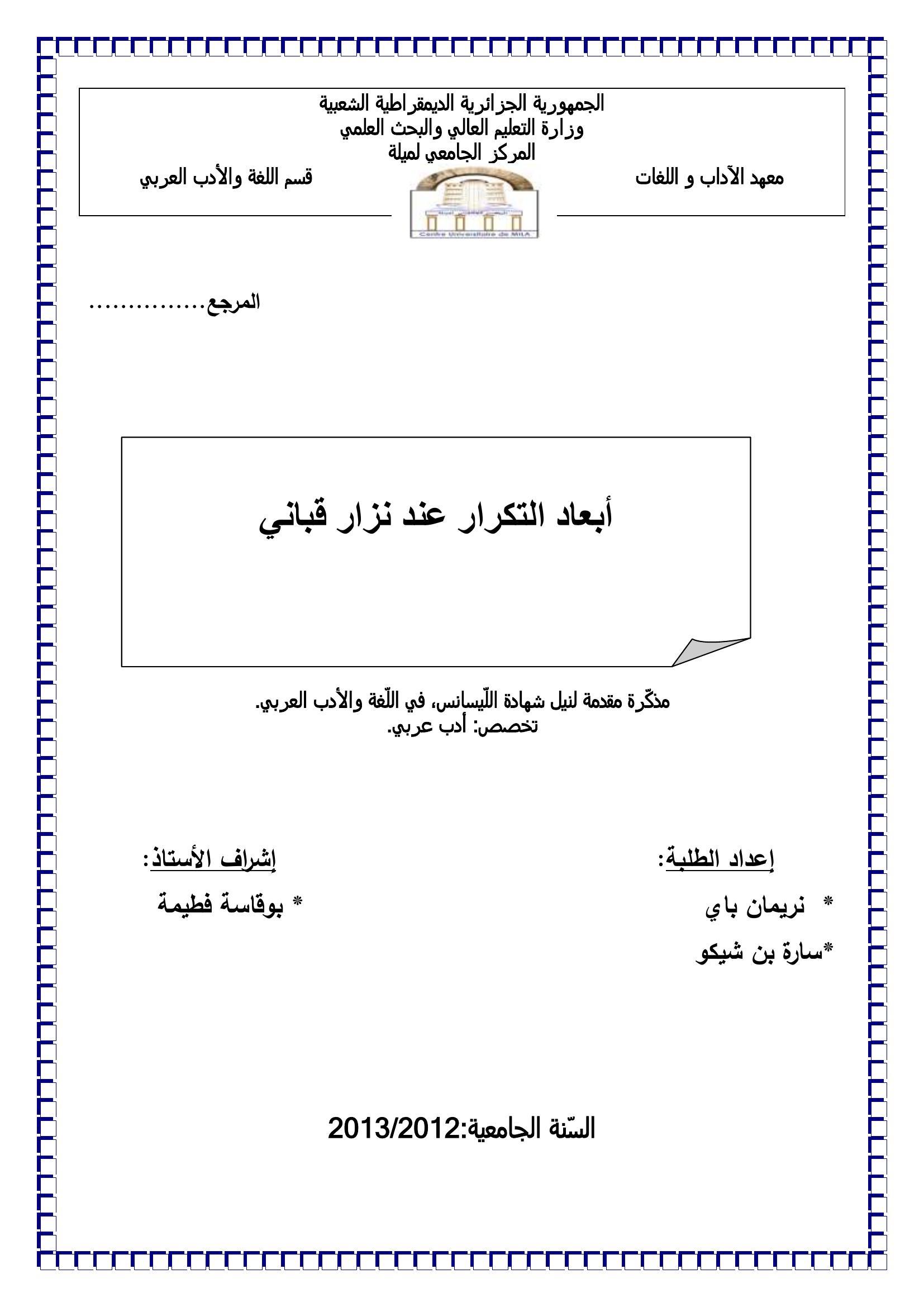 نريمان باي et al. (2013). أبعاد التكرار عند نزار قباني.