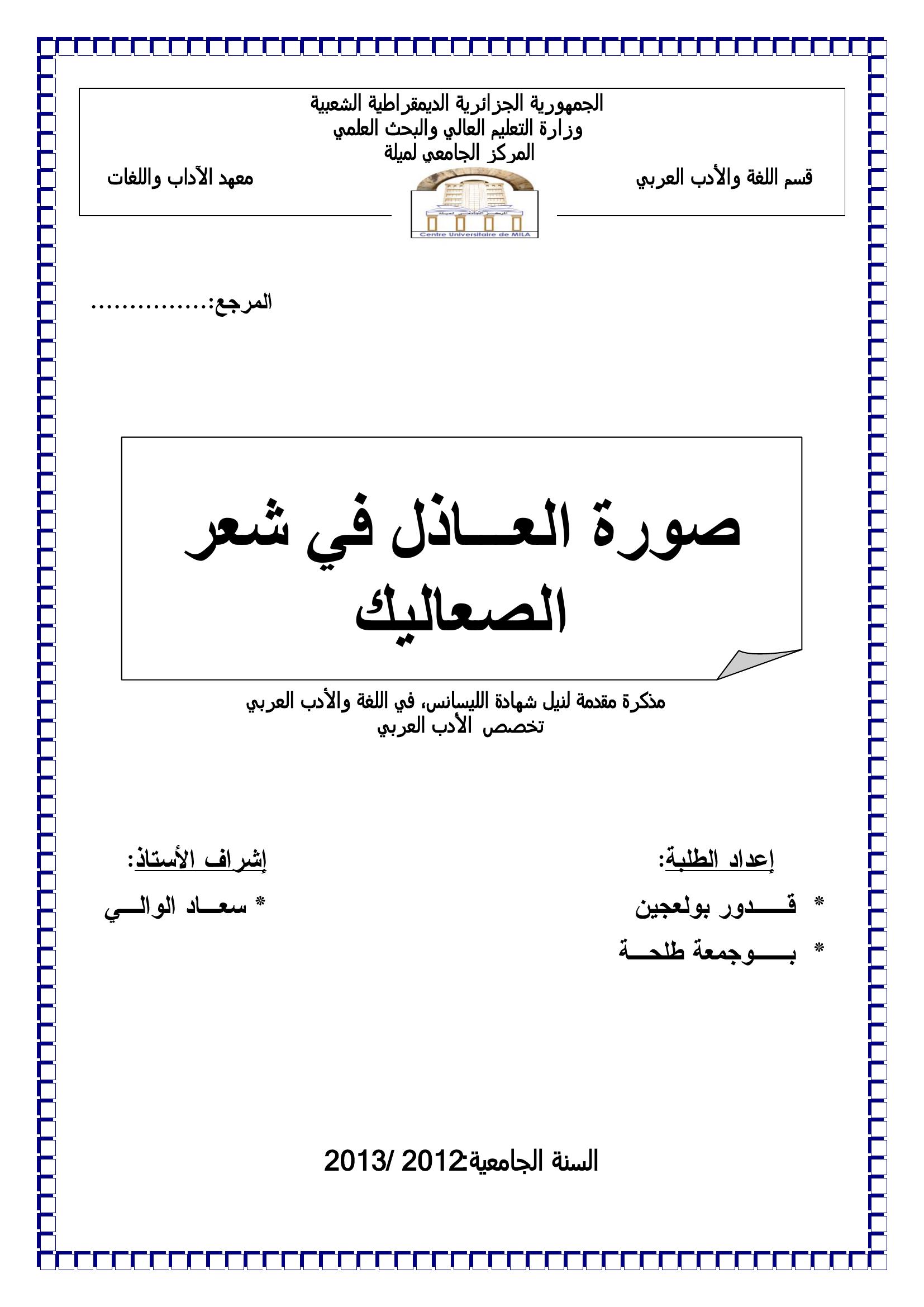 قدور بولعجين et al. (2013). صورة العاذل في شعر الصعاليك.