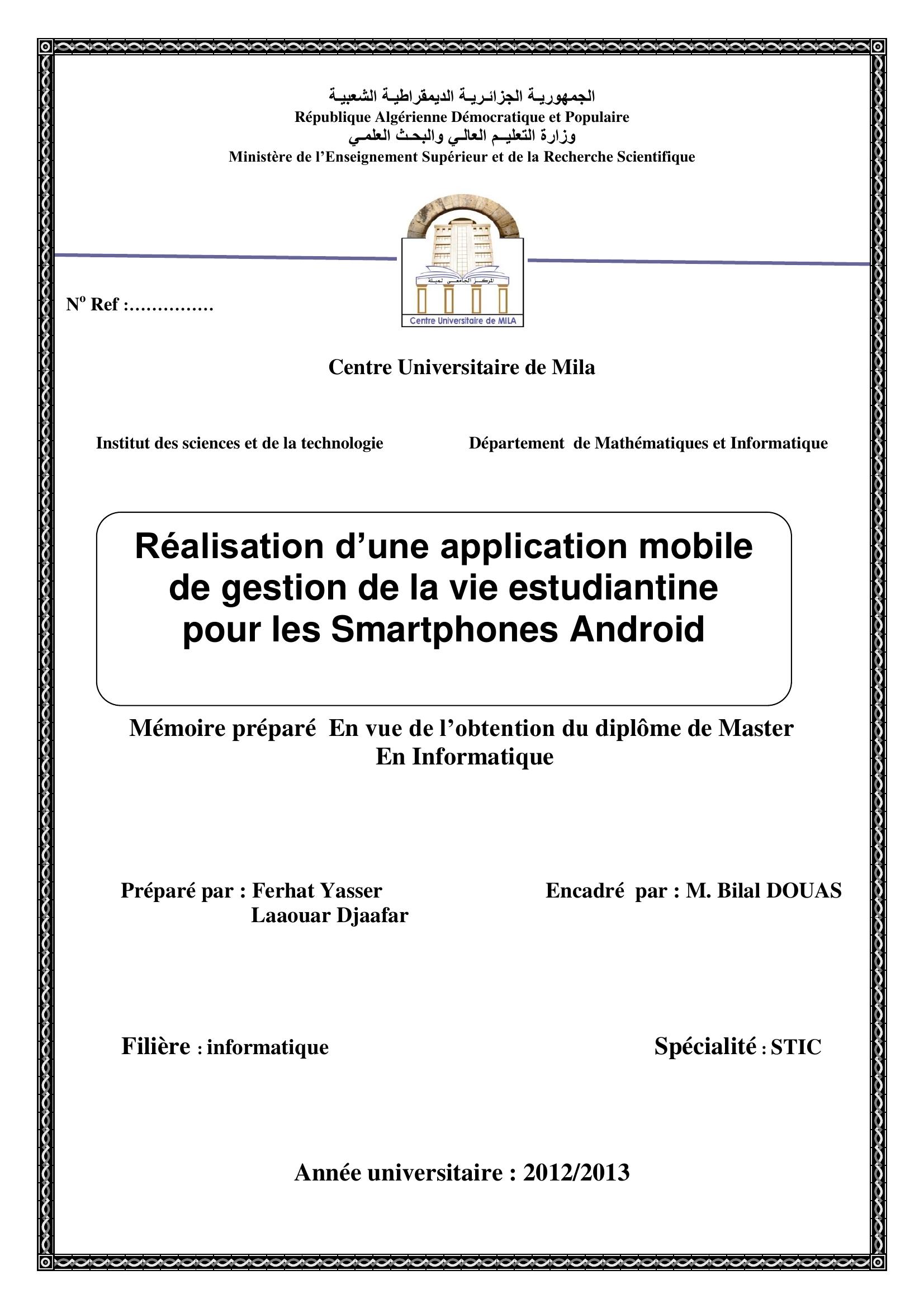 Ferhat Yasser & Douas bilal(encadreur) (2013). Réalisartion d' une application mobile de gestion de la vie estudiantine pour les Smartphones Android.