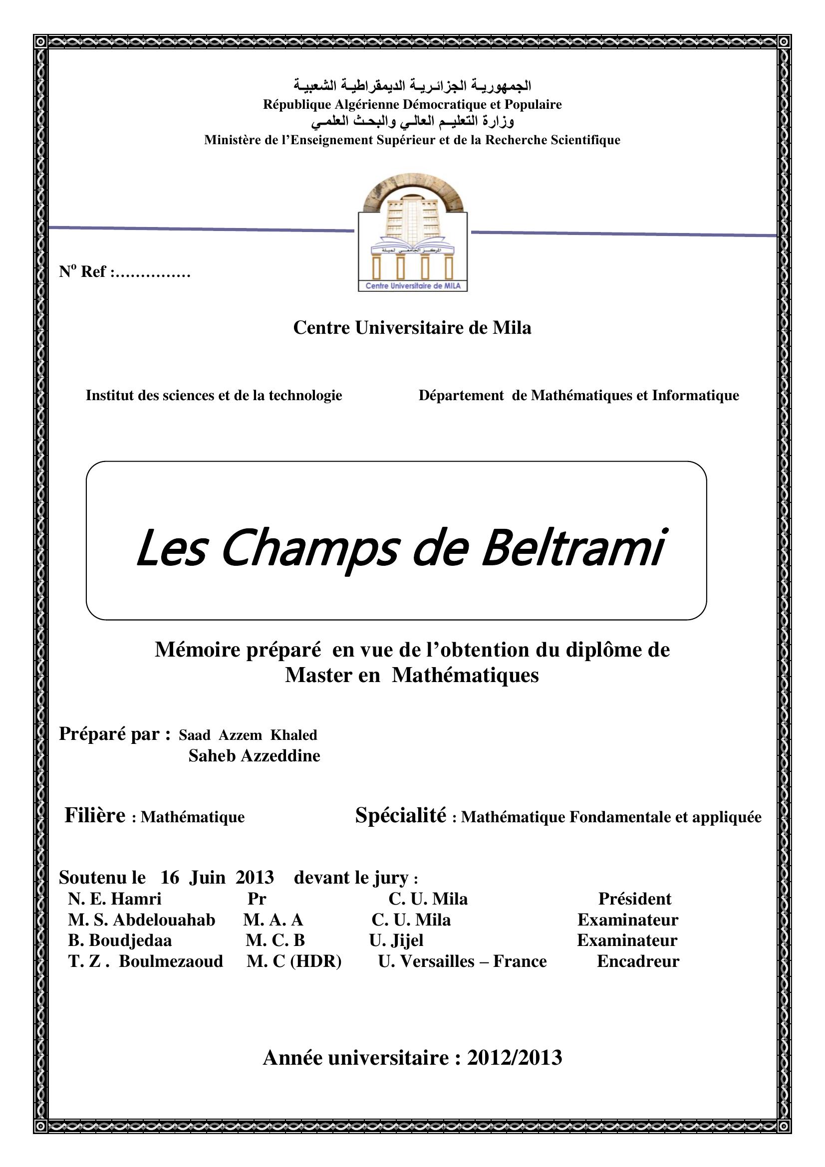 Saad Azzem Khaled & N. E. Hamri président, M. (2013). Les champs de beltrami.