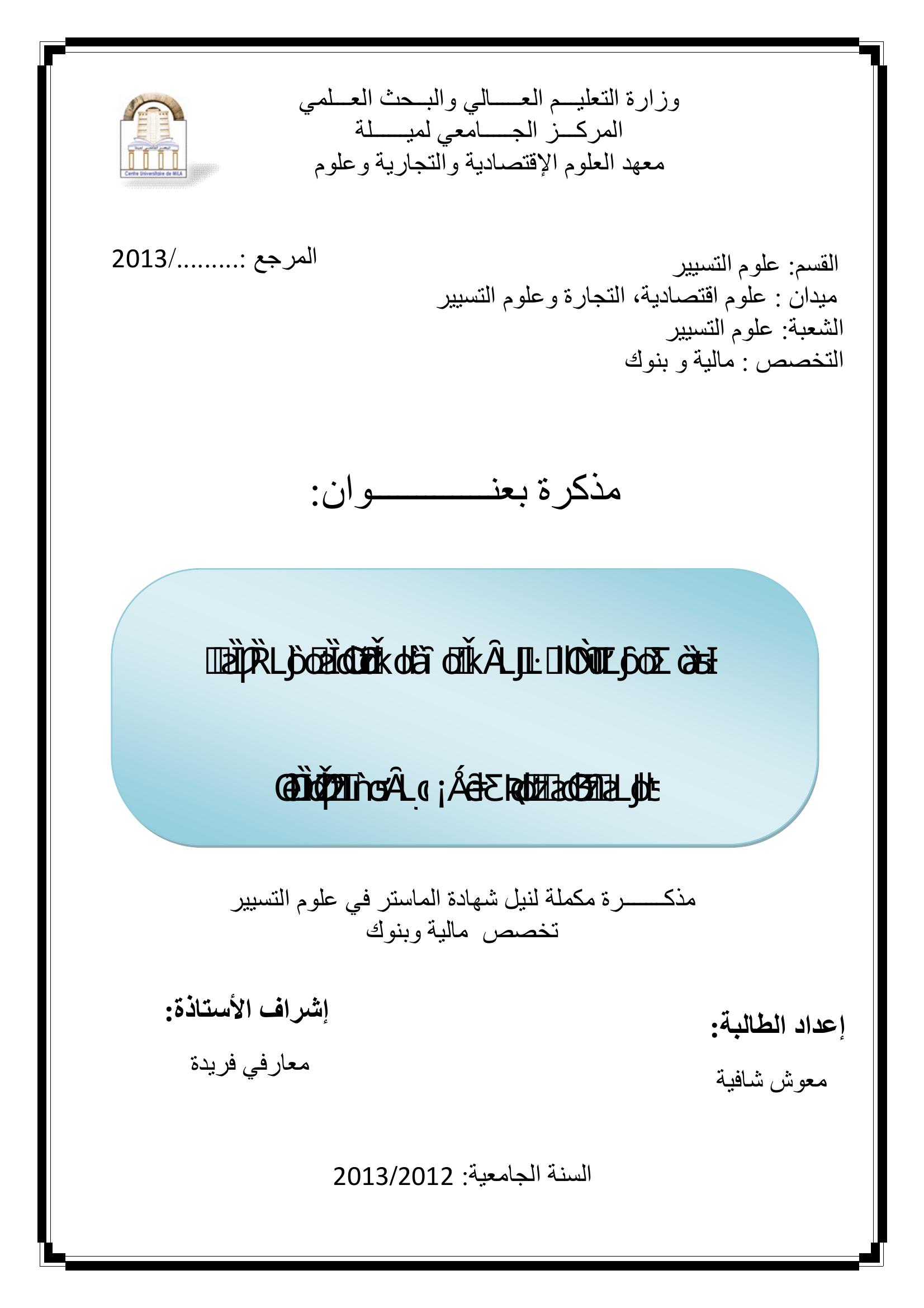معوش شافية & معارفي فريدة(مشرفا) (2013). أدوات الاستثمار في سوق الأوراق المالية الإسلامية دراسة حالة : البحرين ,السودان ,ماليزيا..
