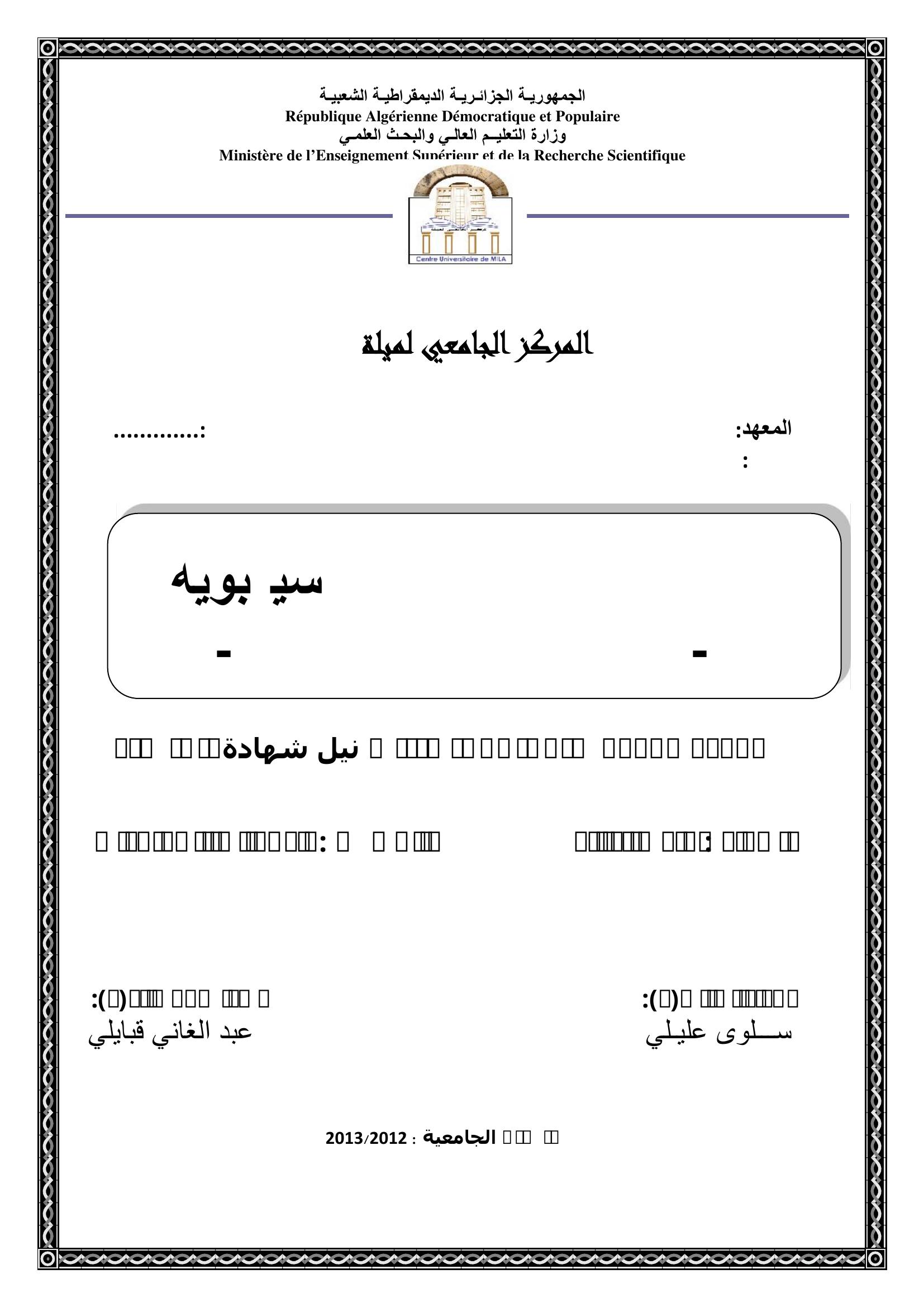 سلوى عليلي & قبايلي عبد الغاني (مشرفا) (2013). المصطلح النحّوي عند سيبويه- الجزء الأول أ نمودجا -.