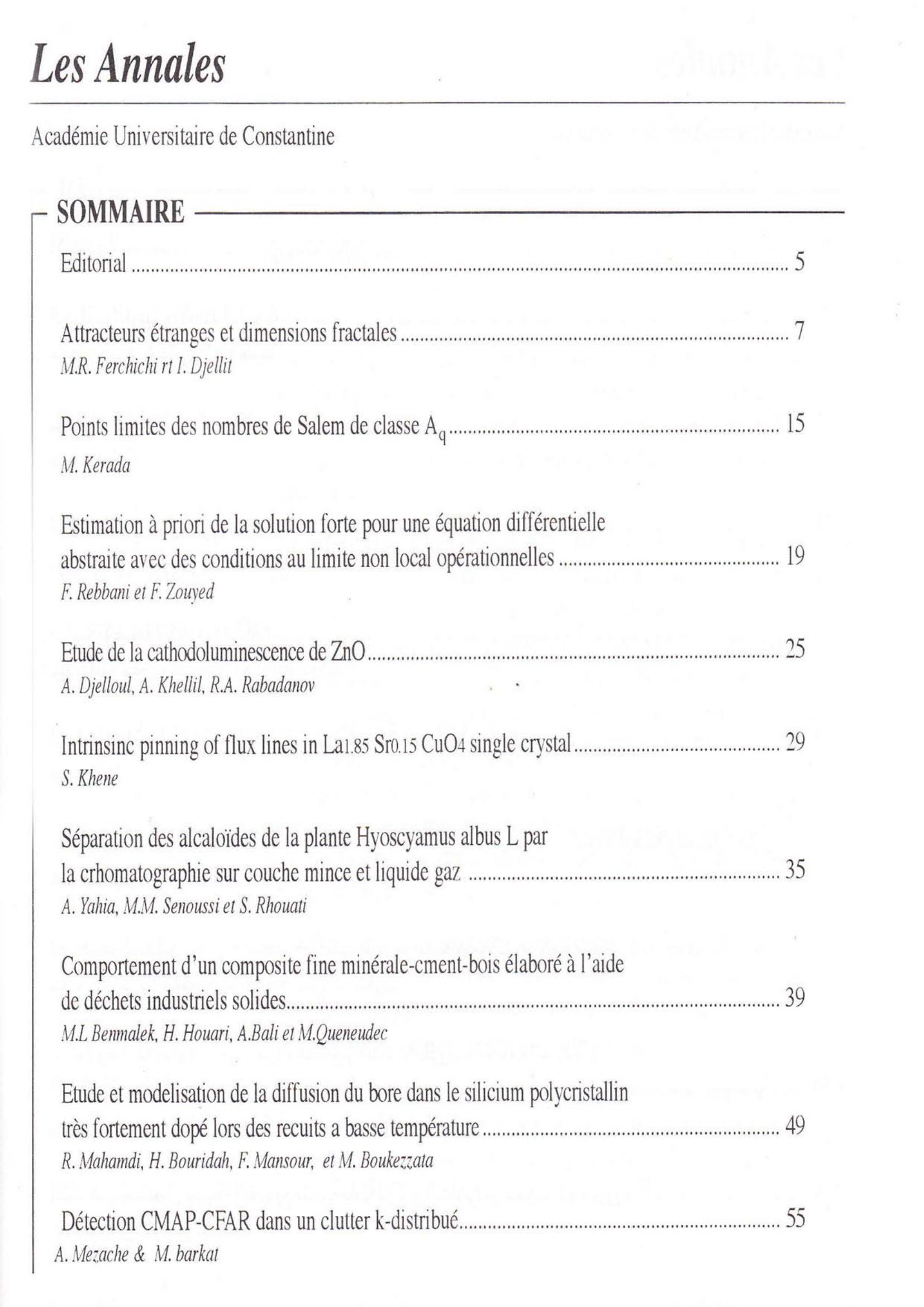 | N° Bulletin | Date / Année de parution | Titre N° Spécial | Sommaire |