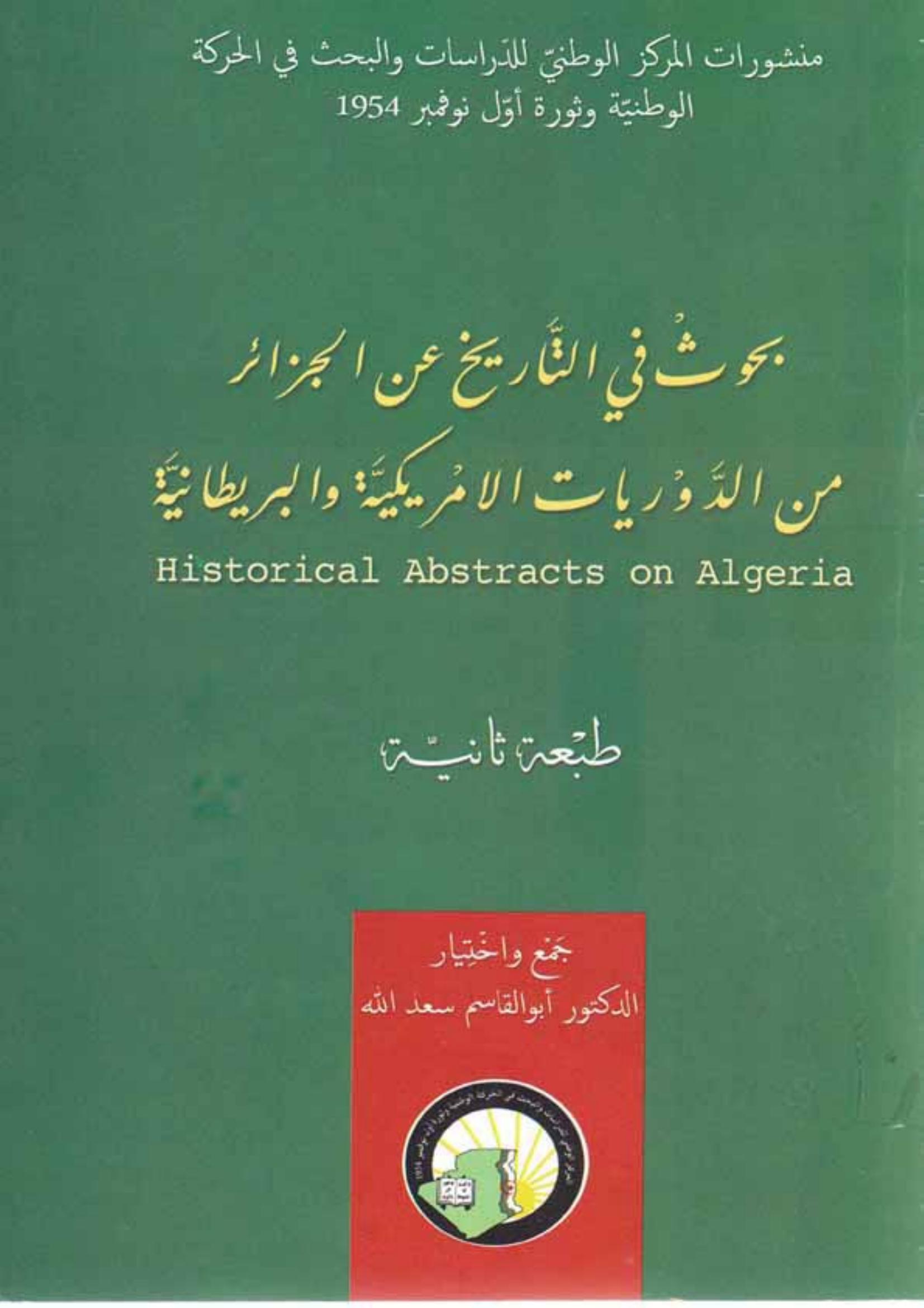 المركز الوطني للدراسات والبحث في الحركة الوطنية وثورة أول نوفمبر 1954 & أبو القاسم سعد الله (2010). بحوث في التاريخ عن الجزائر من الدوريات الامريكية والبريطانية