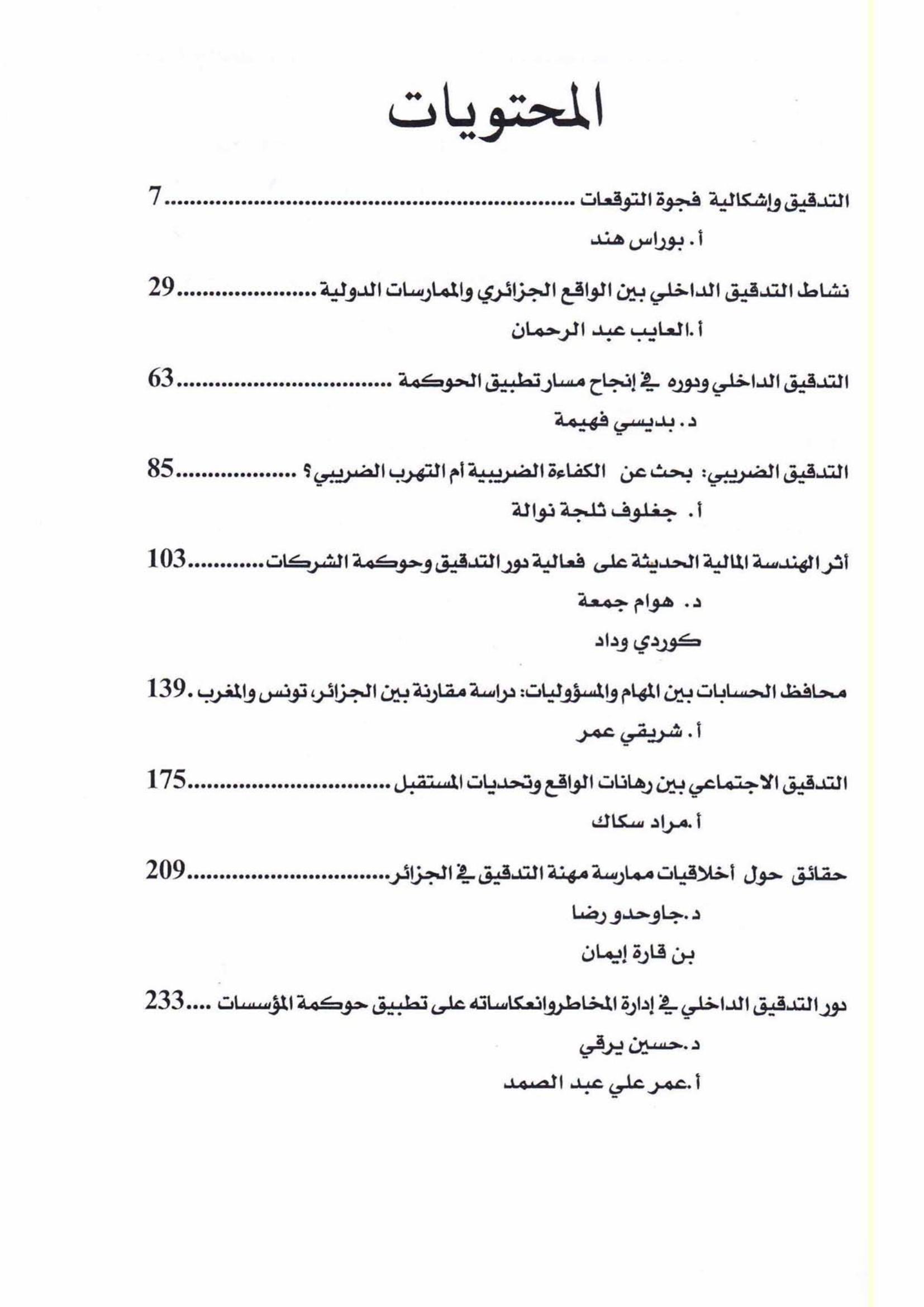 كلية العلوم الاقتصادية والتجارية وعلوم التسيير (2011). مهنة التدقيق في الجزائر الواقع والأفاق في ضوء المستجدات العالمية المعاصرة