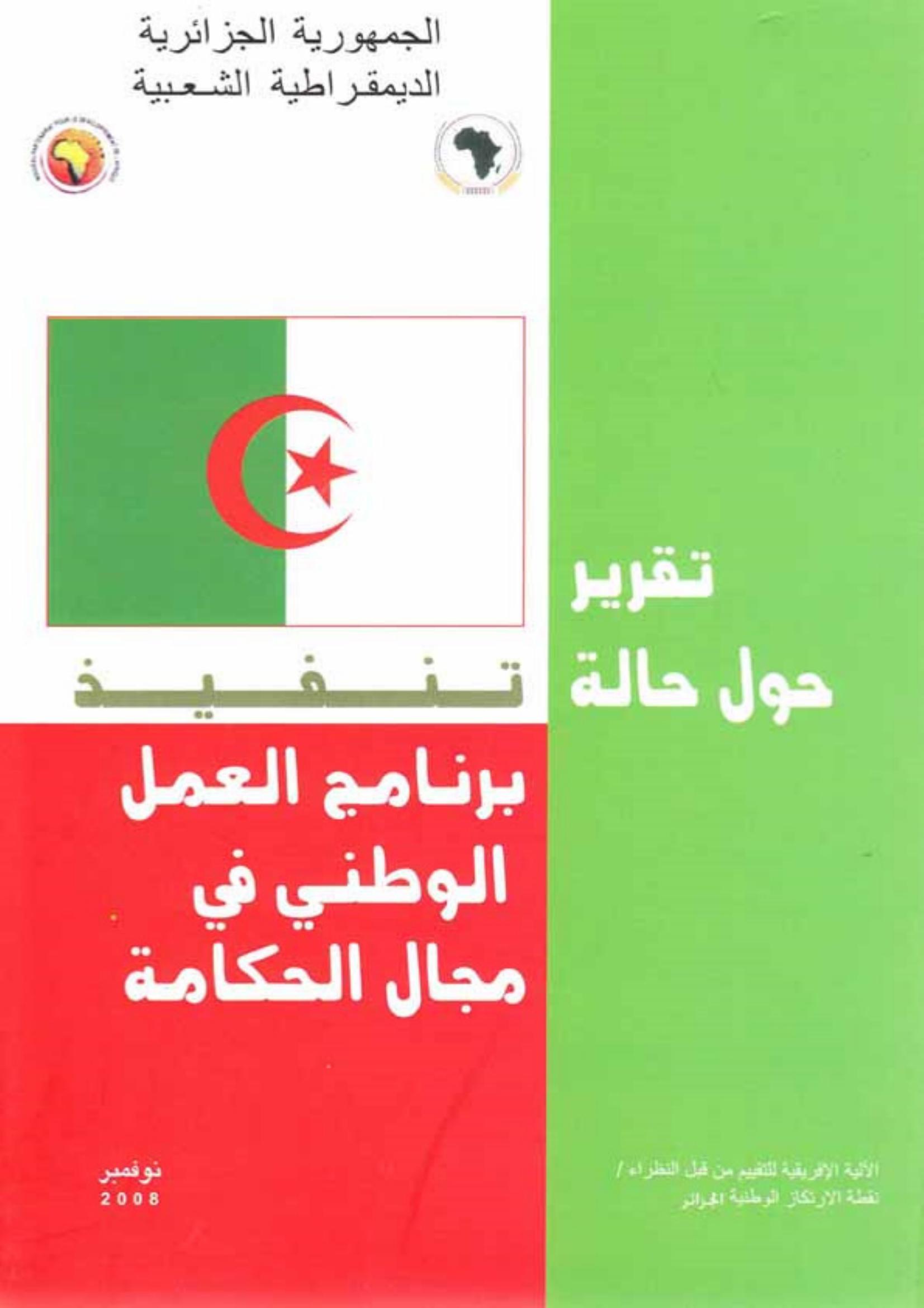 الالية الإفريقية من قبل النظراء . الجزائر (2008). تقرير حول حالة تنفيذ برنامج العمل الوطني في مجال الحكامة