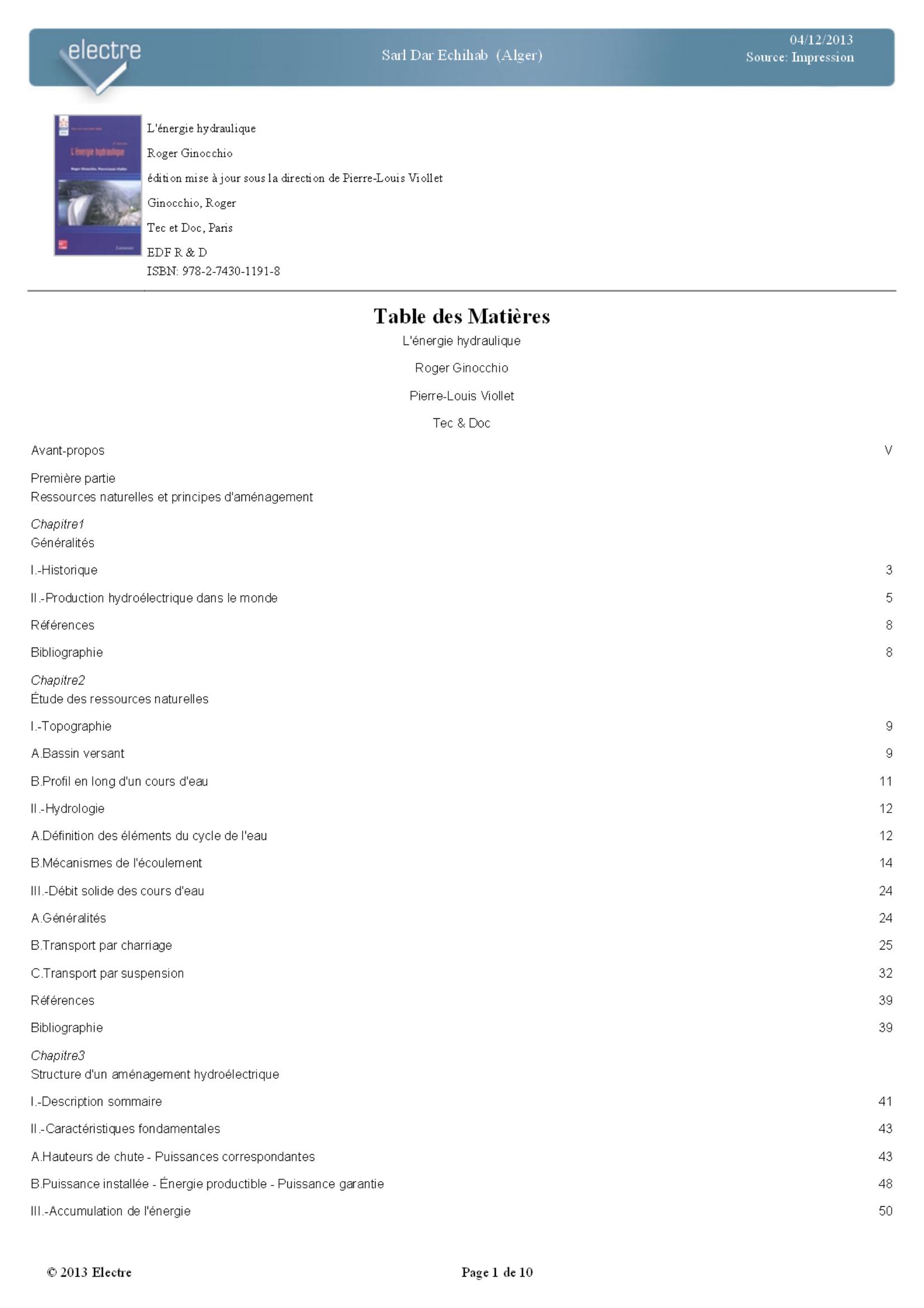 Roger Ginocchio (2012). L'énergie hydraulique (2.éd) . Tec et Doc;