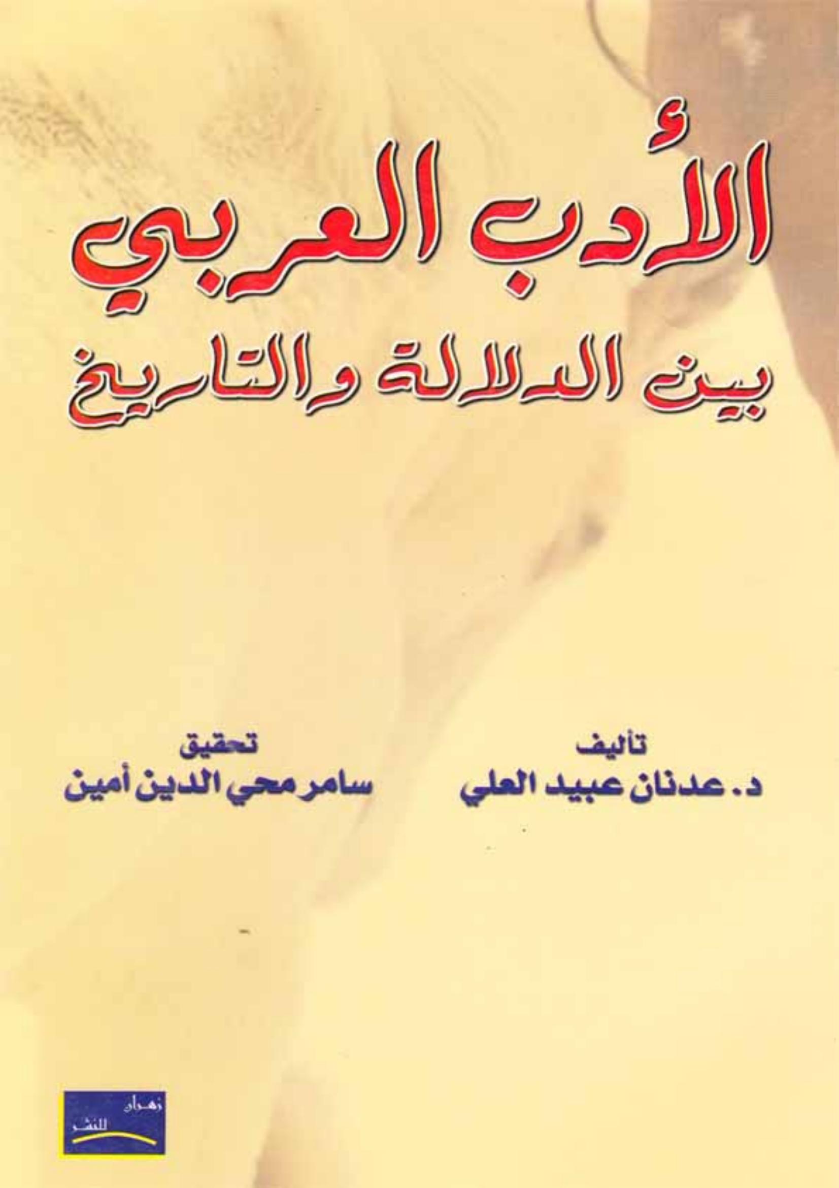 د. عدنان عبيد العلي (2013). الأدب العربي بين الدلالة والتاريخ (ط.1) . دار زهران للنشر والتوزيع;