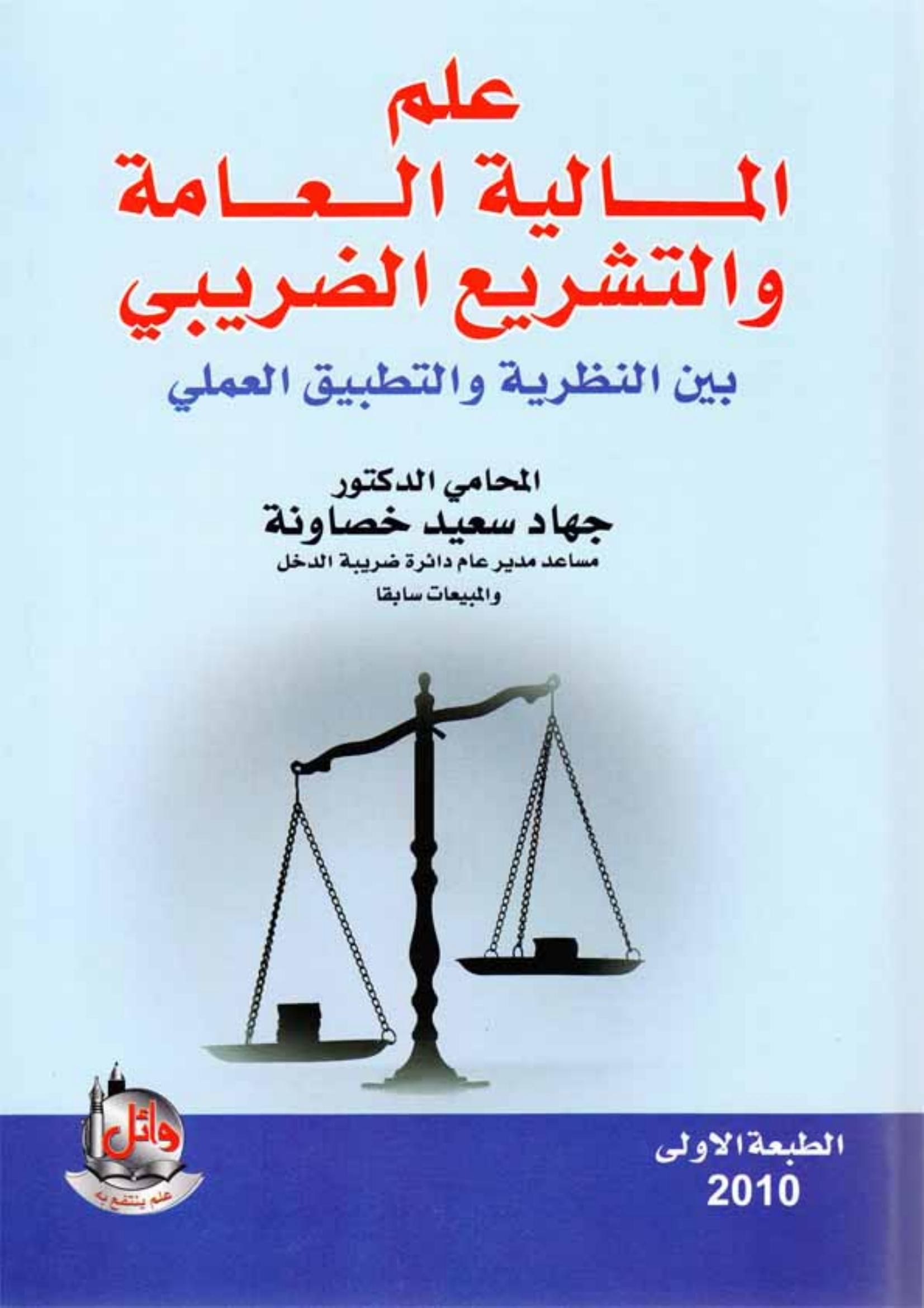 د. جهاد سعيد خصاونة (2010). علم المالية العامة والتشريع الضريبي (ط.1) . دار وائل للنشر والتوزيع;