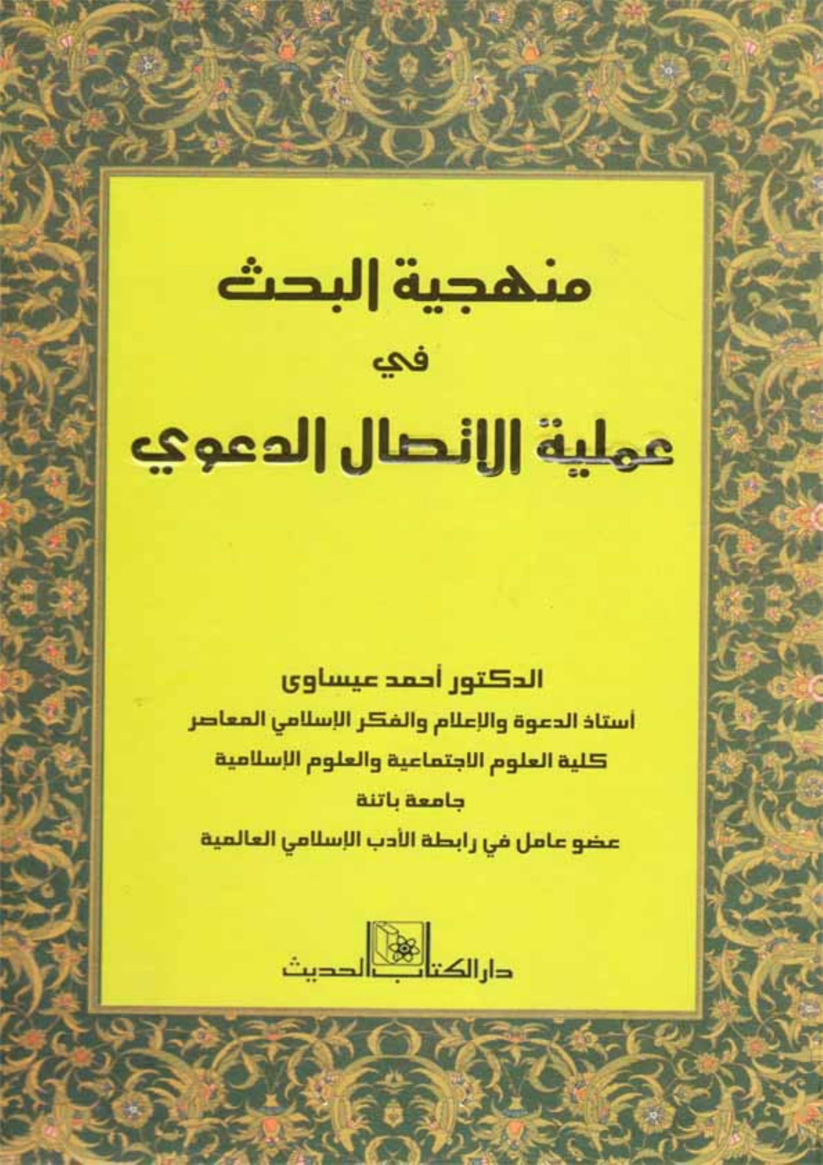 د. أحمد عيساوي (2012). منهجية البحث في عملية الاتصال الدعوي (ط.1) . دار الكتاب الحديث;