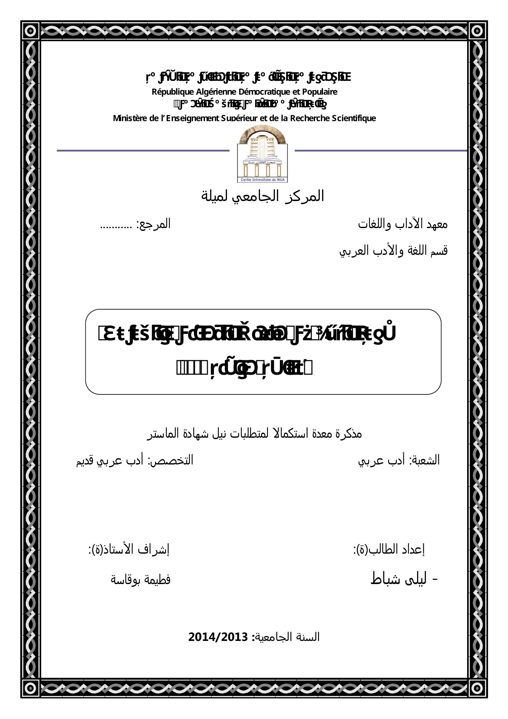 شباط ليلى & بوقاسة فطيمة ( مشرفا) (2014). صورة البطل في مقامات الهمذاني والحريري - دراسة موازنة -.