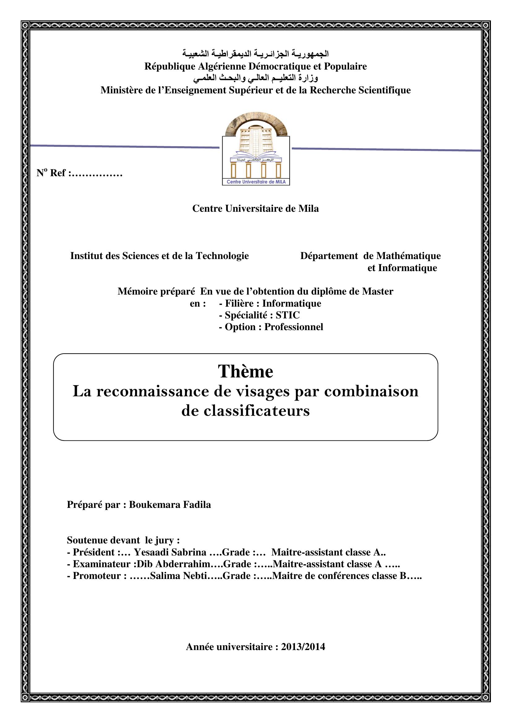 Boukemara Fadila & Yesaadi Sabrina Président, D. (2014). La Reconnaissance de visage par combinaison de classificateurs.