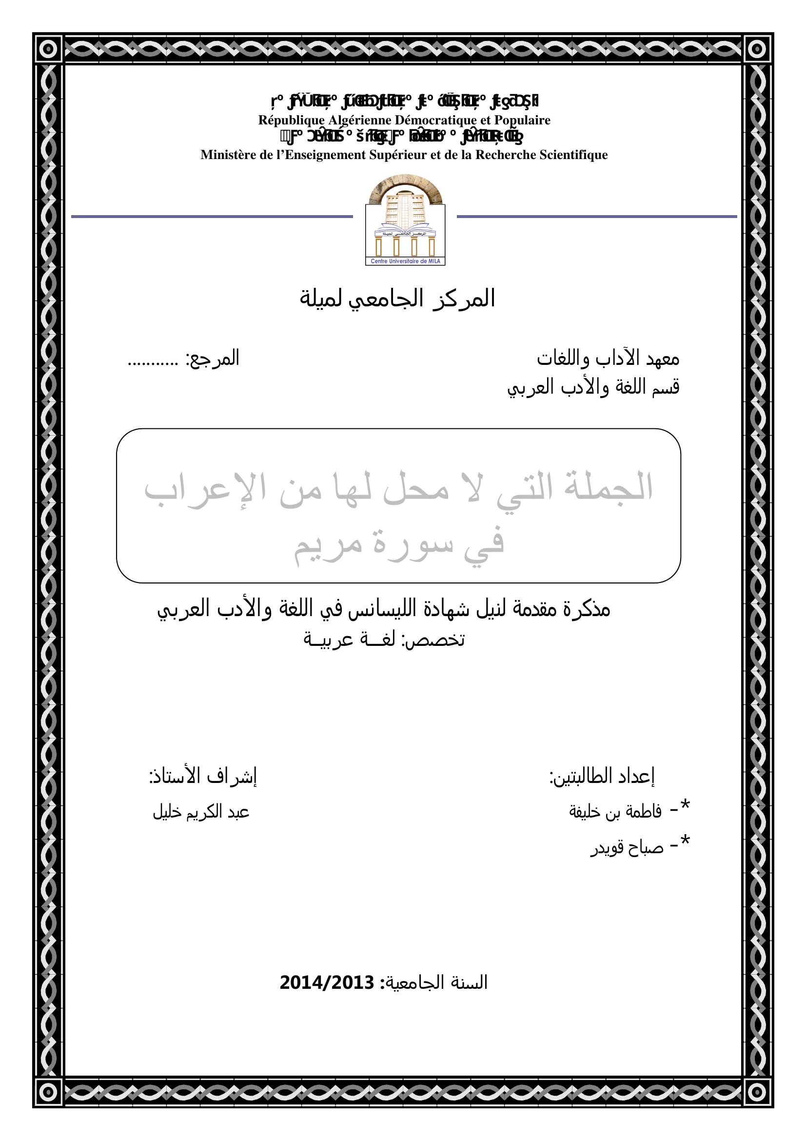 بن خليفة فاطمة & خليل عبد الكريم (مشرفا) (2014). الجملة التي لا محل لها من الإعراب في سورة مريم.