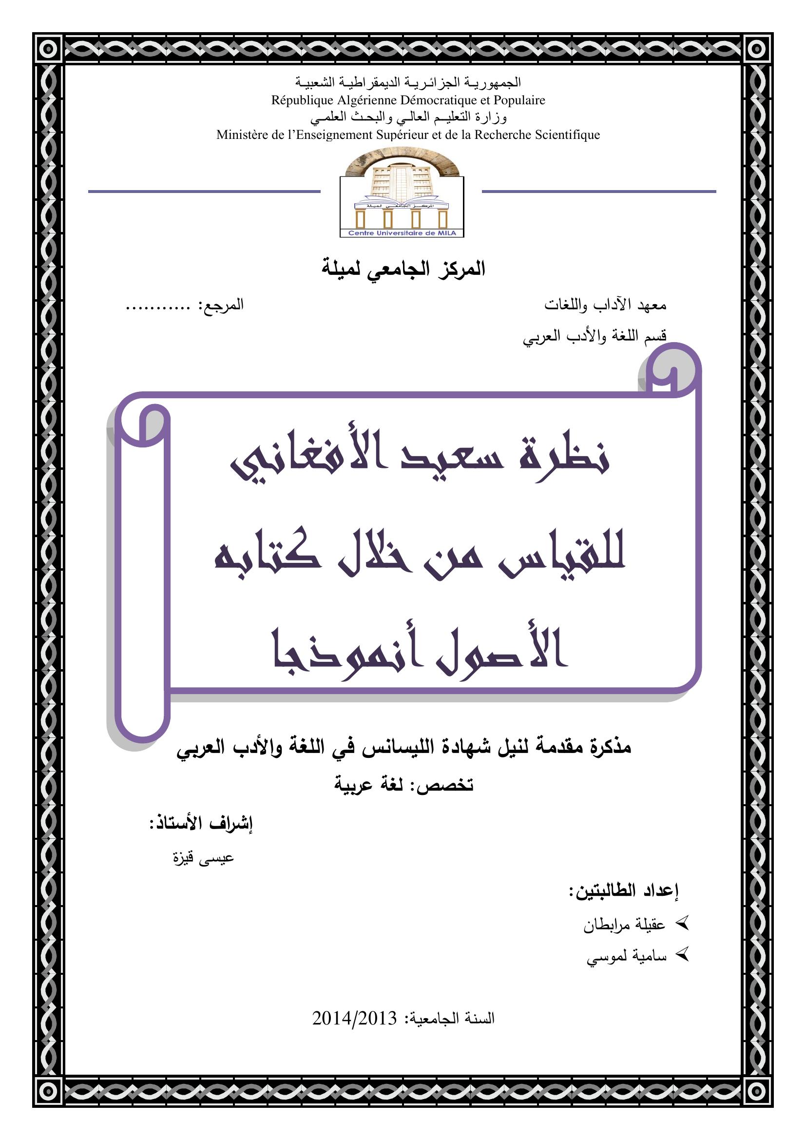 مرابطان عقيلة et al. (2014). نظرية سعيد الأفغاني للقياس من خلال كتابه الأصولأنموذجا.