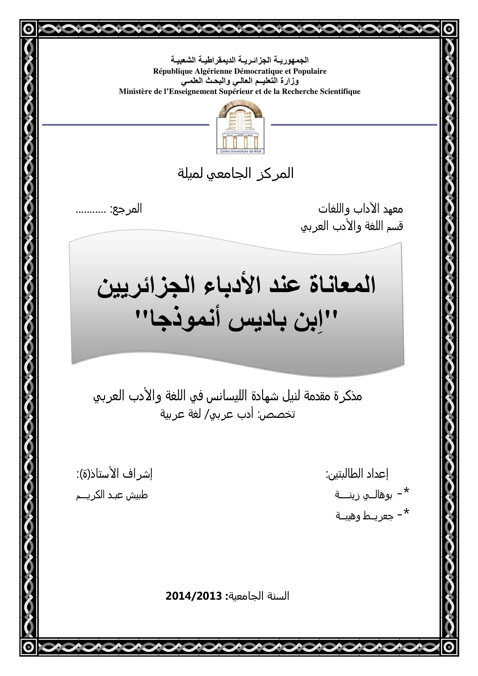 بوهالي زينة et al. (2014). المعاناة عند الأدباء الجزائريين " ابن باديس أنموذجا ".