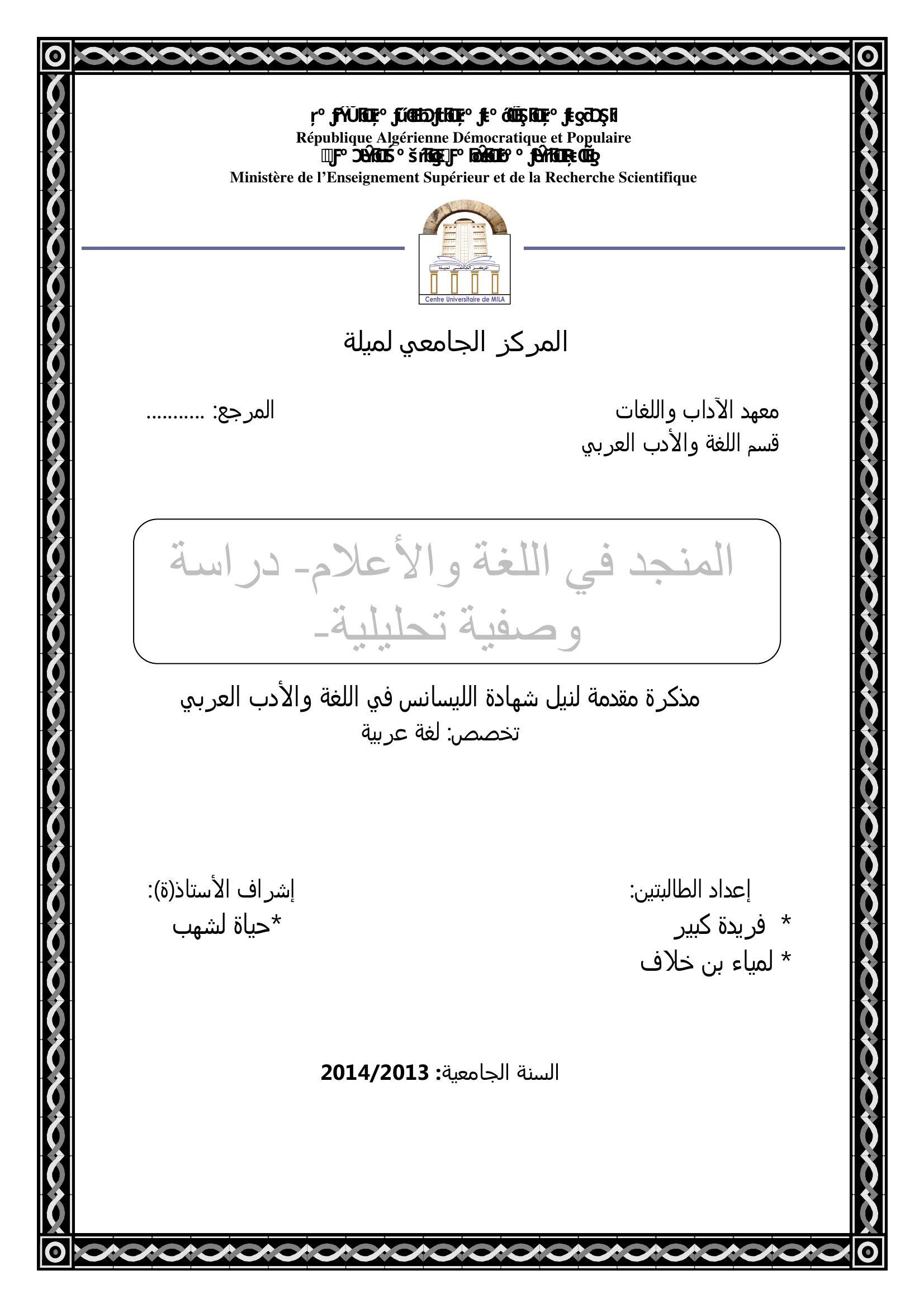 كبير فريدة et al. (2014). المنجد في اللغة والأعلام - دراسة وصفية تحليلية -.