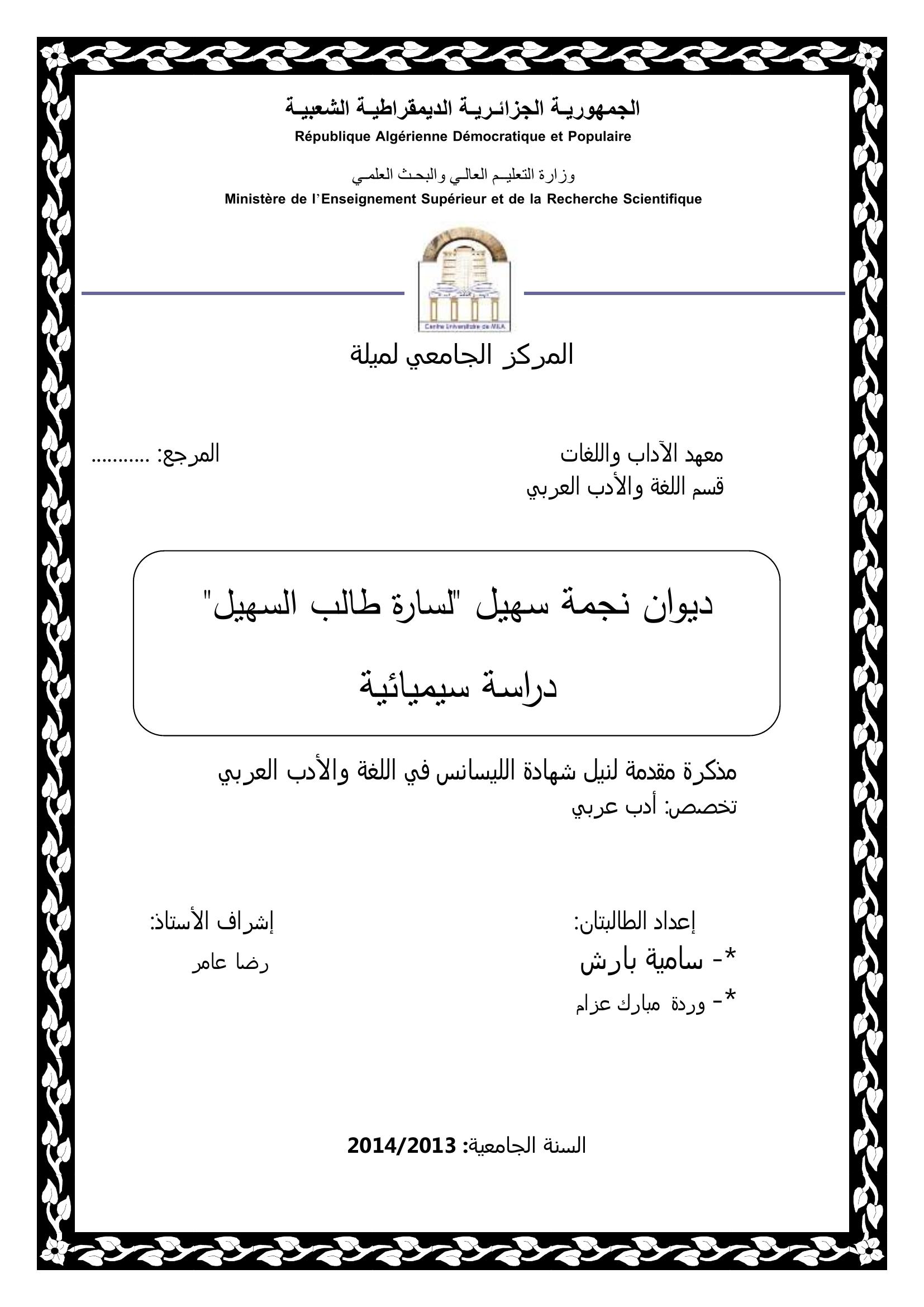 بارش سامية et al. (2014). ديوان نجمة سهيل " لسارة طالب السهيل " دراسة سيميائية.