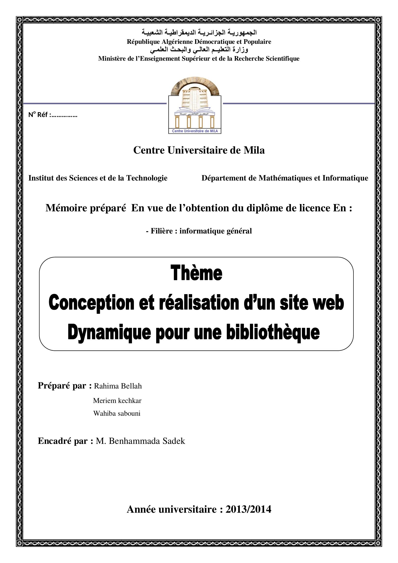 BELLAH Rahima & Benhammada Sadek( encadreur) (2014). Conception et réalisation d'un sit web dynamique pour une bibliothèque.