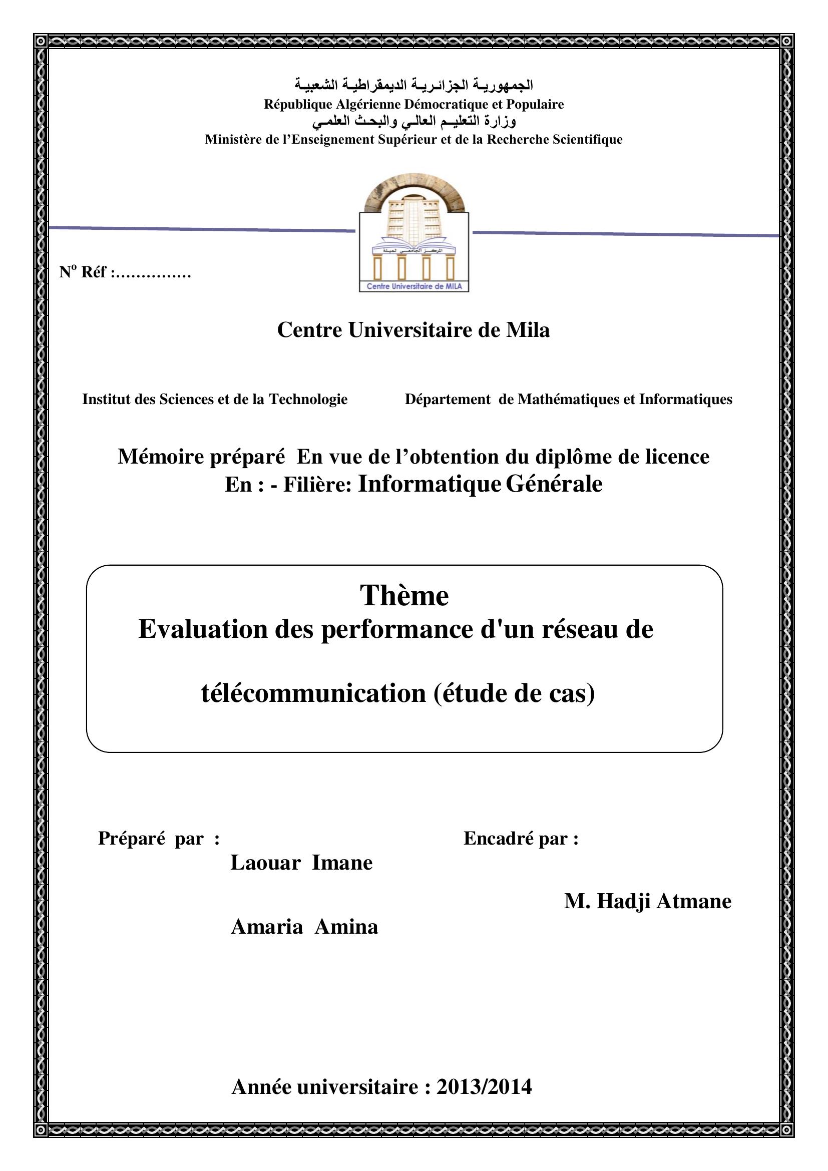 LAOUAR Imane & Hadji Atmane encadreur (2014). Evaliation des performance d'un réseau de télécommunication - étude de cas -.
