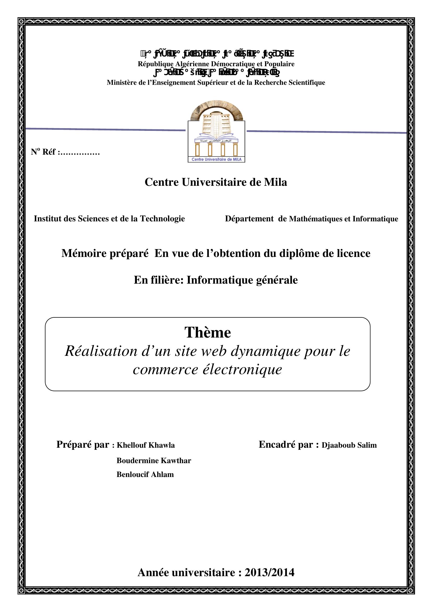 Ali Moussa Ikram & Djaaboub Salim( encadreur) (2014). réalisation d'un site dynamique pour le commerce électronique.