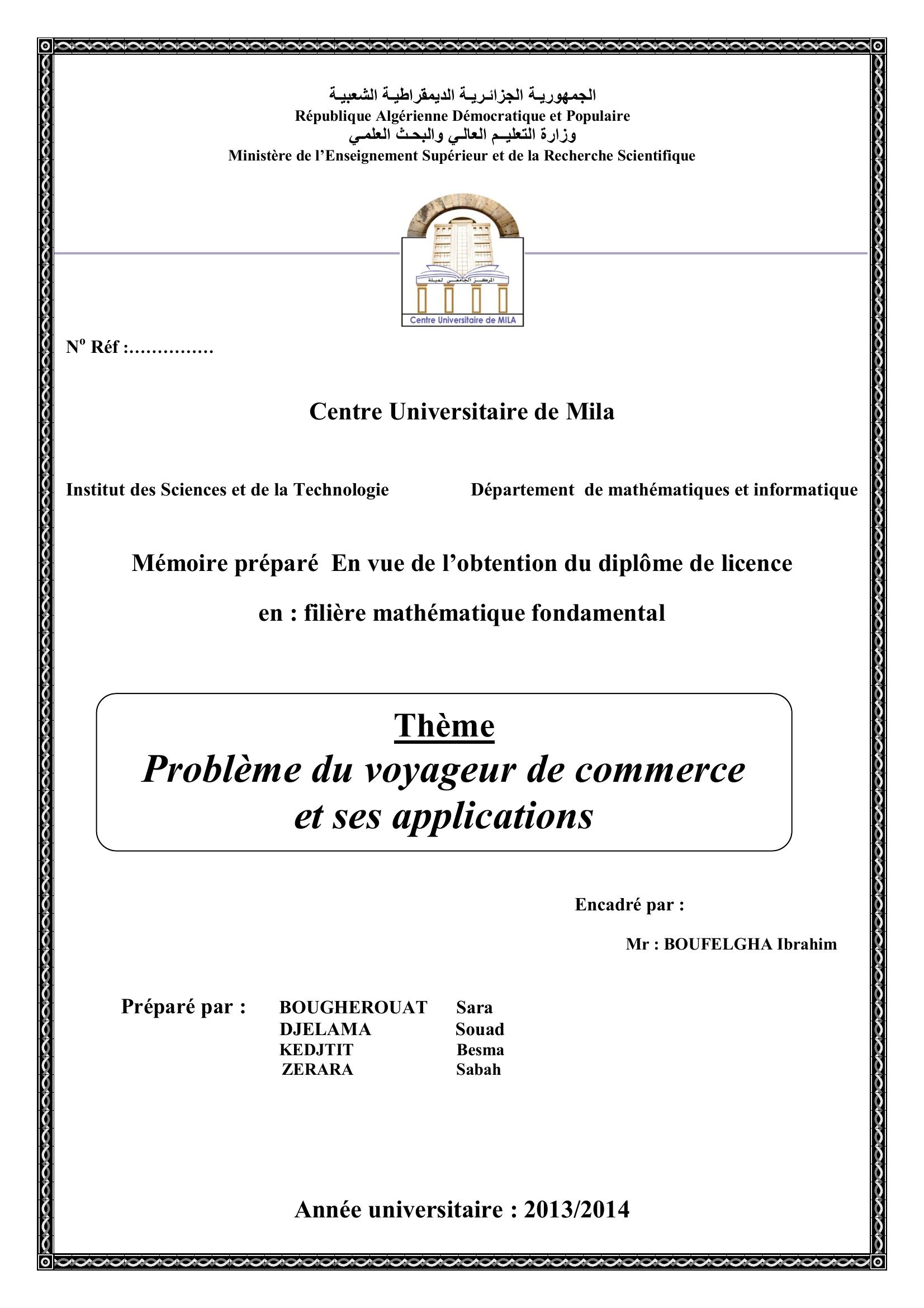 DJELAMA souad & BOUFELGHA IBRAHIM encadreur (2014). Problèm de voyageur de commerce et ses applications.