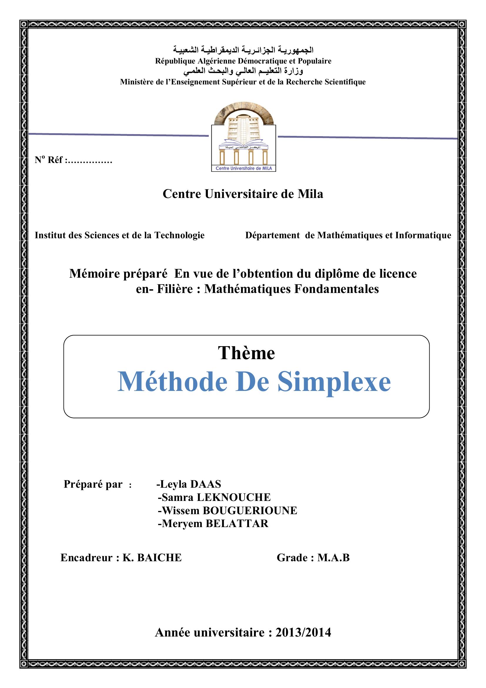 DAAS leyla & K. BAICHE encadreur (2014). Méthode de simplexe.