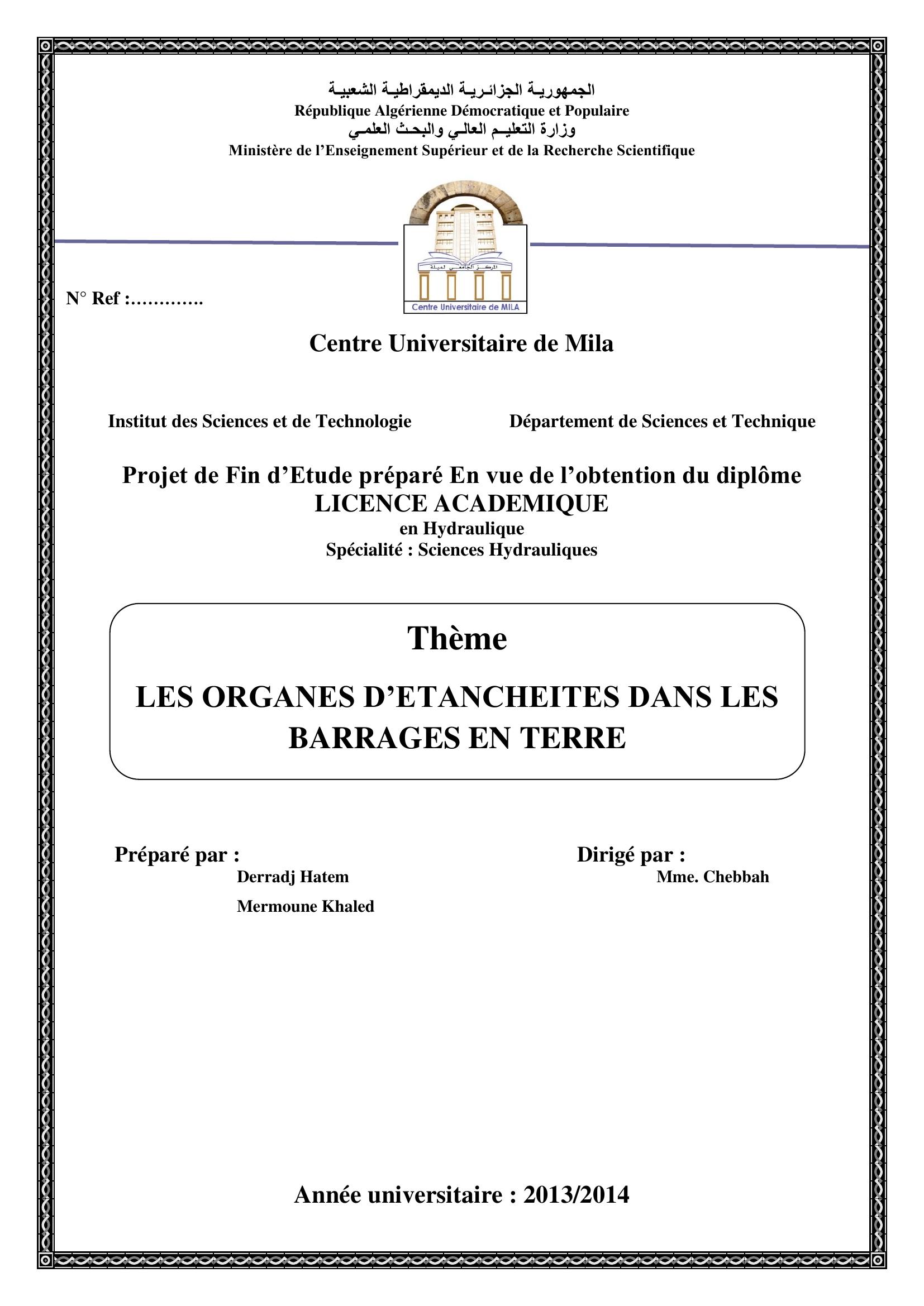 DERRADJ hatem & Chebbah .L encadreur (2014). Les organes d'etancheites dans les barrages en terre.