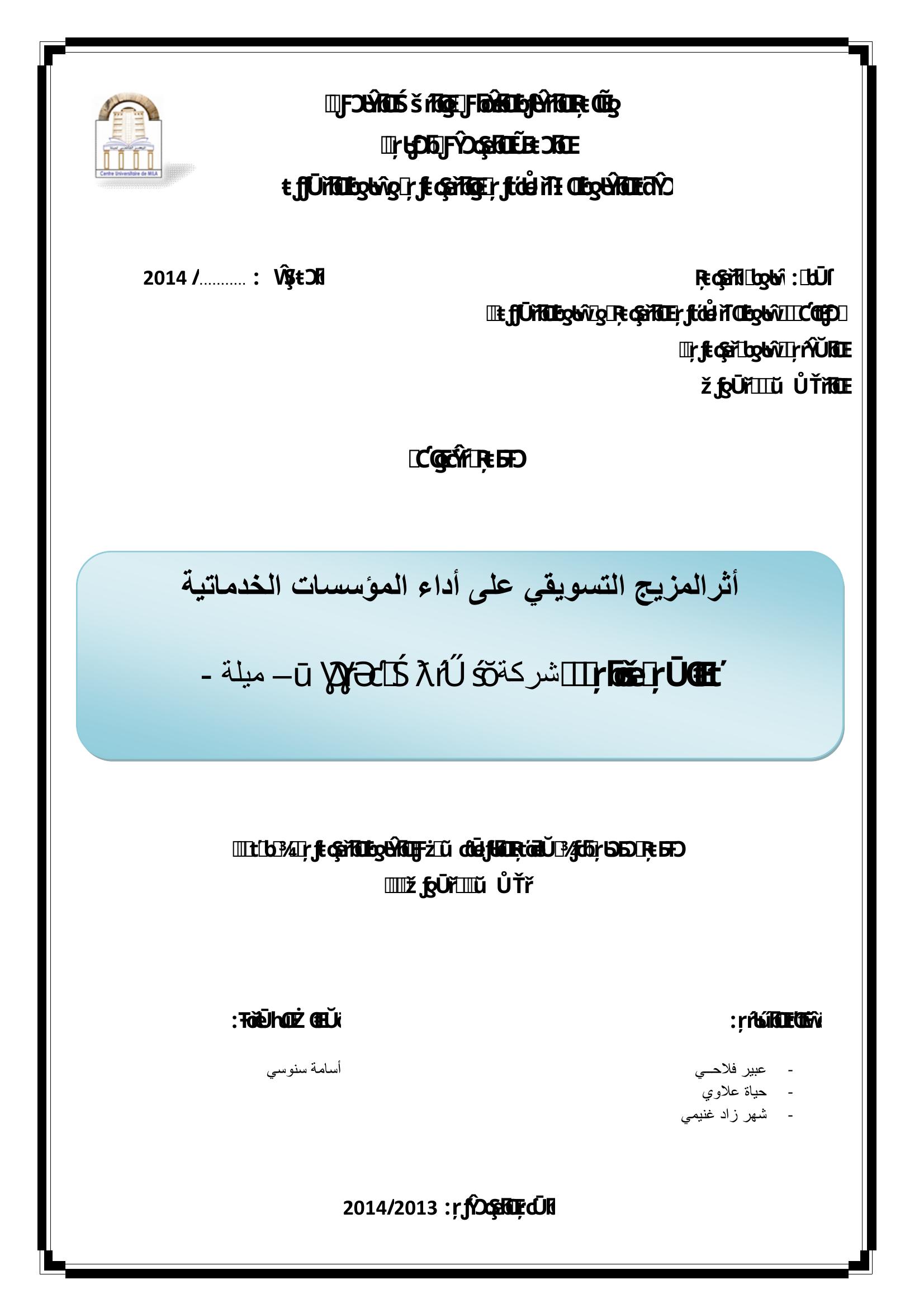 فلاحي عبير & سنوسي أسامة(مشرفا) (2014). أثر المزيج التسويقي على أداء المؤسسات الخدماتية دراسة حالة شركة إتصالات موبيليس - ميلة -.