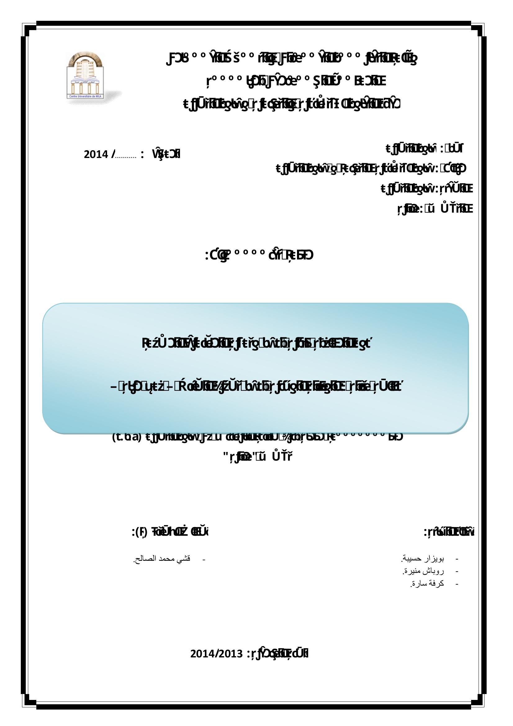 بويزار حسيبة & قشي محمد الصالح(مشرفا) (2014). دور المرافقة كألية لدعم وترقية المشاريع المصغرة دراسة حالة الوكالة الوطنية لدعم تشغيل الشباب- فرع ميلة -.