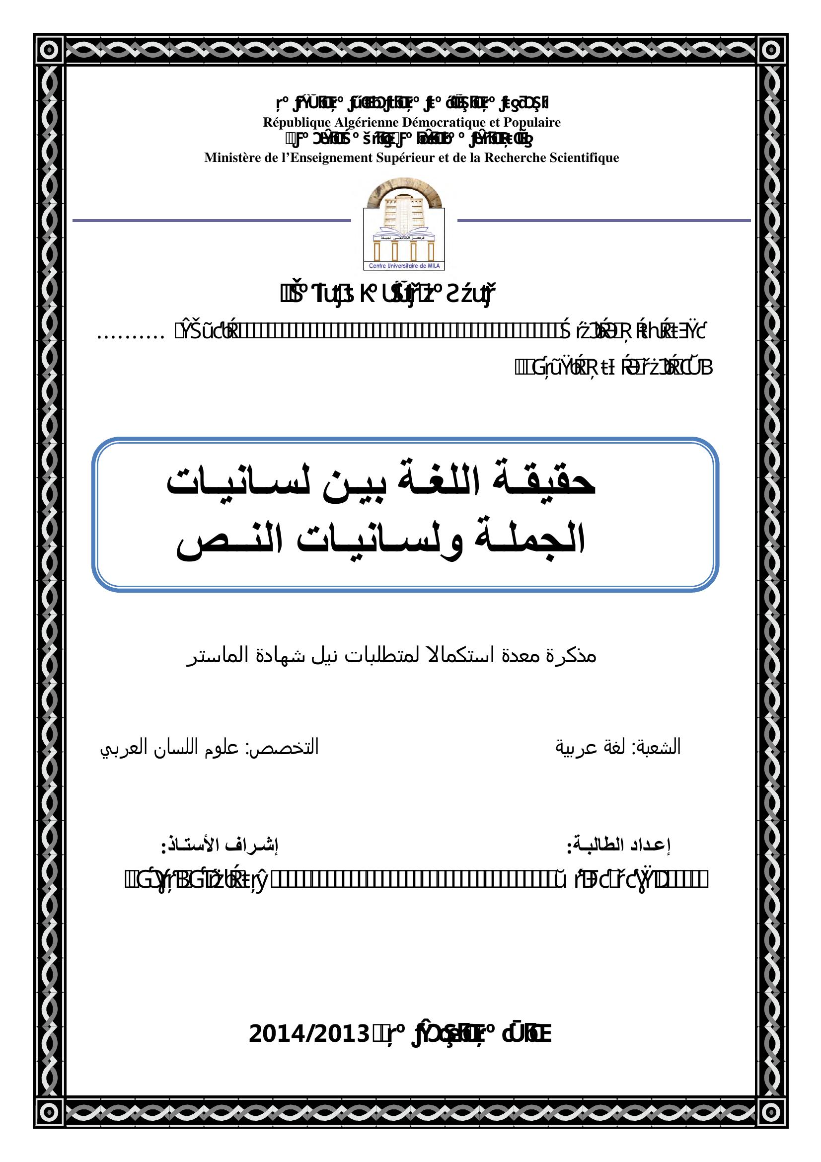 مخناش نعيمة & قبايلي عبد الغاني (مشرفا) (2014). حقيقة اللغة بين لسانيات الجملة ولسانيات النص.