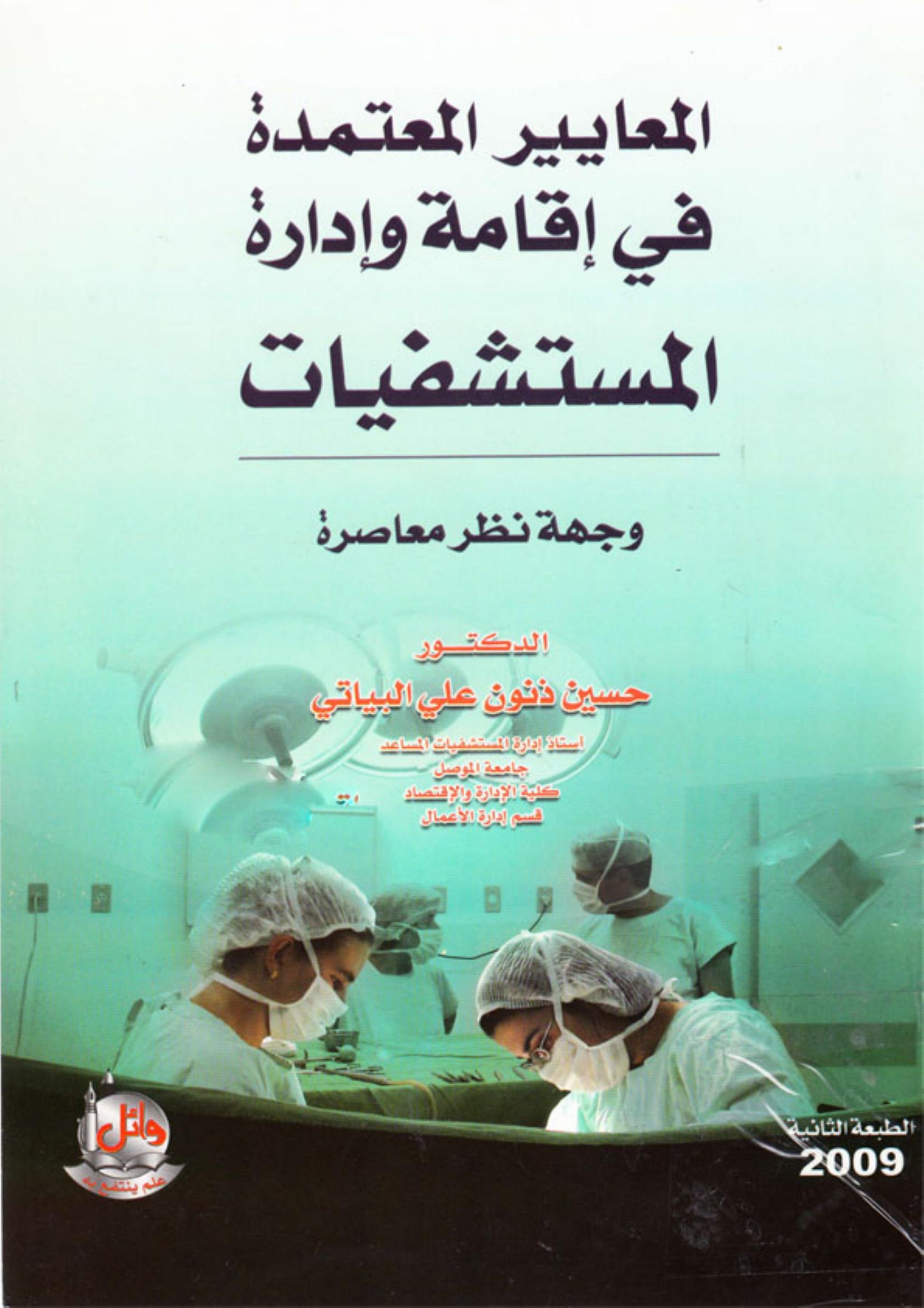 حسين ذنون علي البياتي (2009). المعايير المعتمدة في اقامة وادارة المستشفيات (ط.2) . دار وائل للنشر والتوزيع;