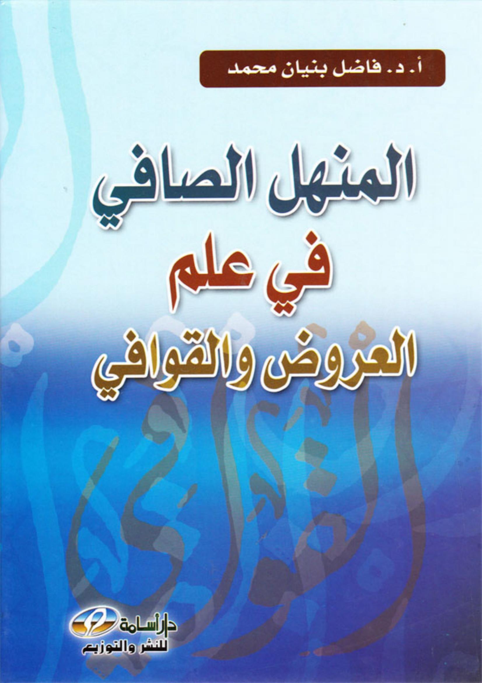 فاضل بنيان محمد (2013). المنهل الصافي في علم العروض والقوافي (ط.1) . دار أسامة للنشر والتوزيع;