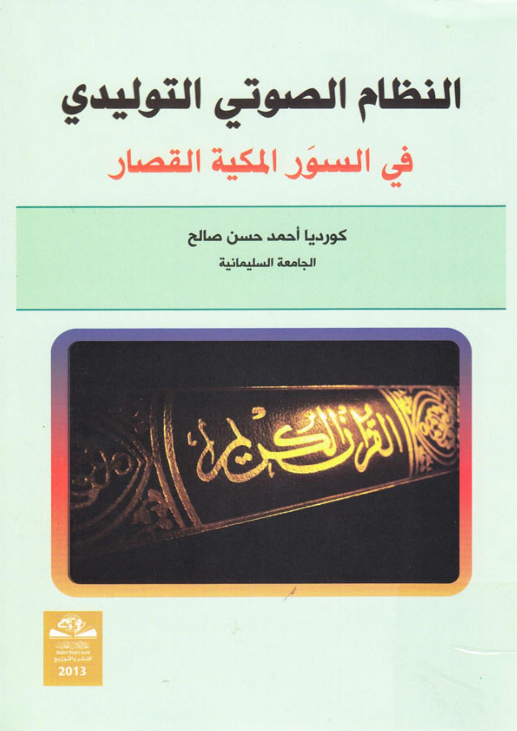 كورديا أحمد حسن صالح (2013). النظام الصوتي التوليدي في السور المكية القصار (ط.1) . عالم الكتب الحديث;