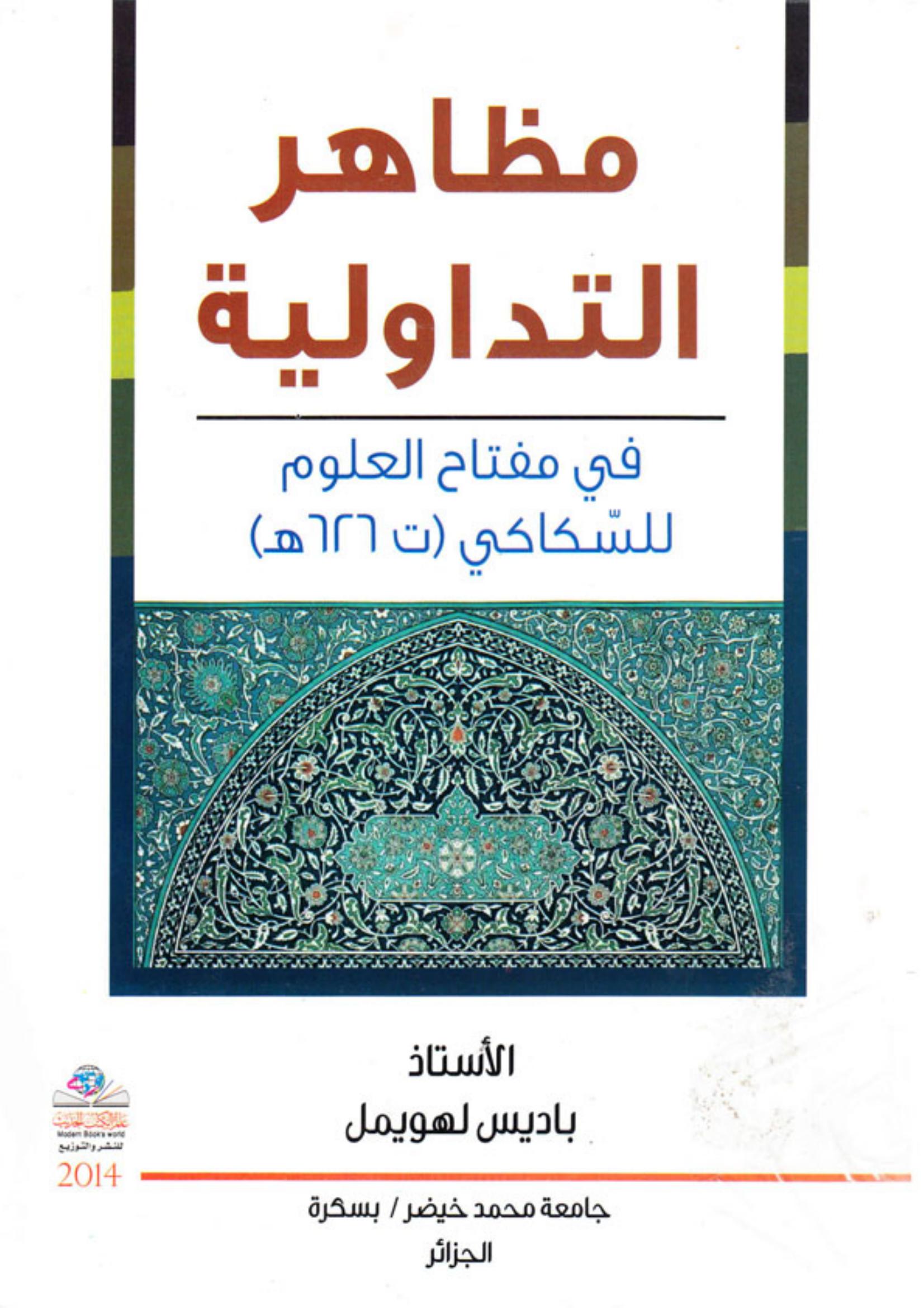 باديس لهويمل (2014). مظاهر التداولية في مفتاح العلوم للسكاكي ( ت 626ه) (ط.1) . عالم الكتب الحديث;