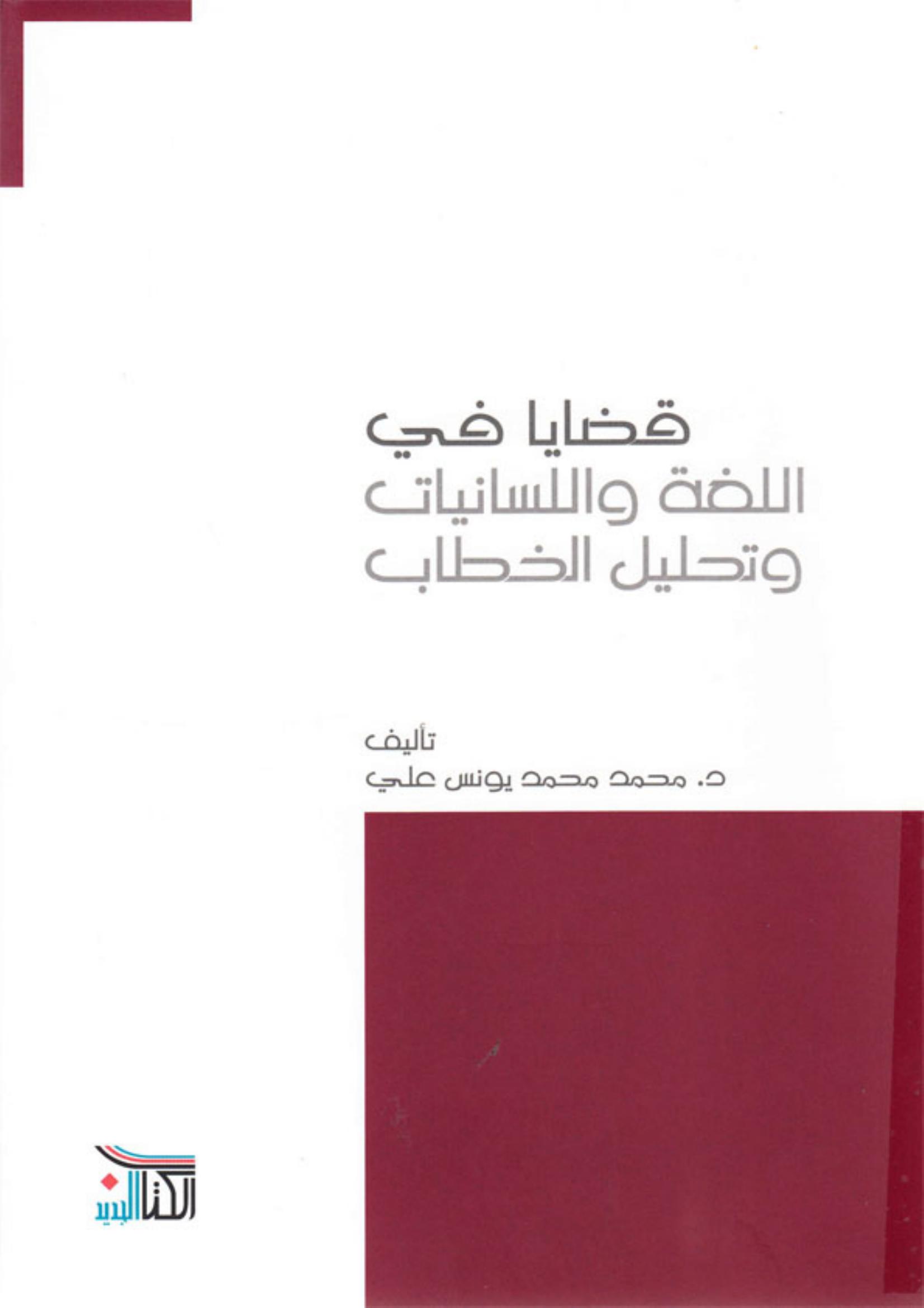 محمد محمد يونس علي (2013). قضايا في اللغة واللسانيات وتحليل الخطاب (ط.1) . دار الكتاب الجديد;