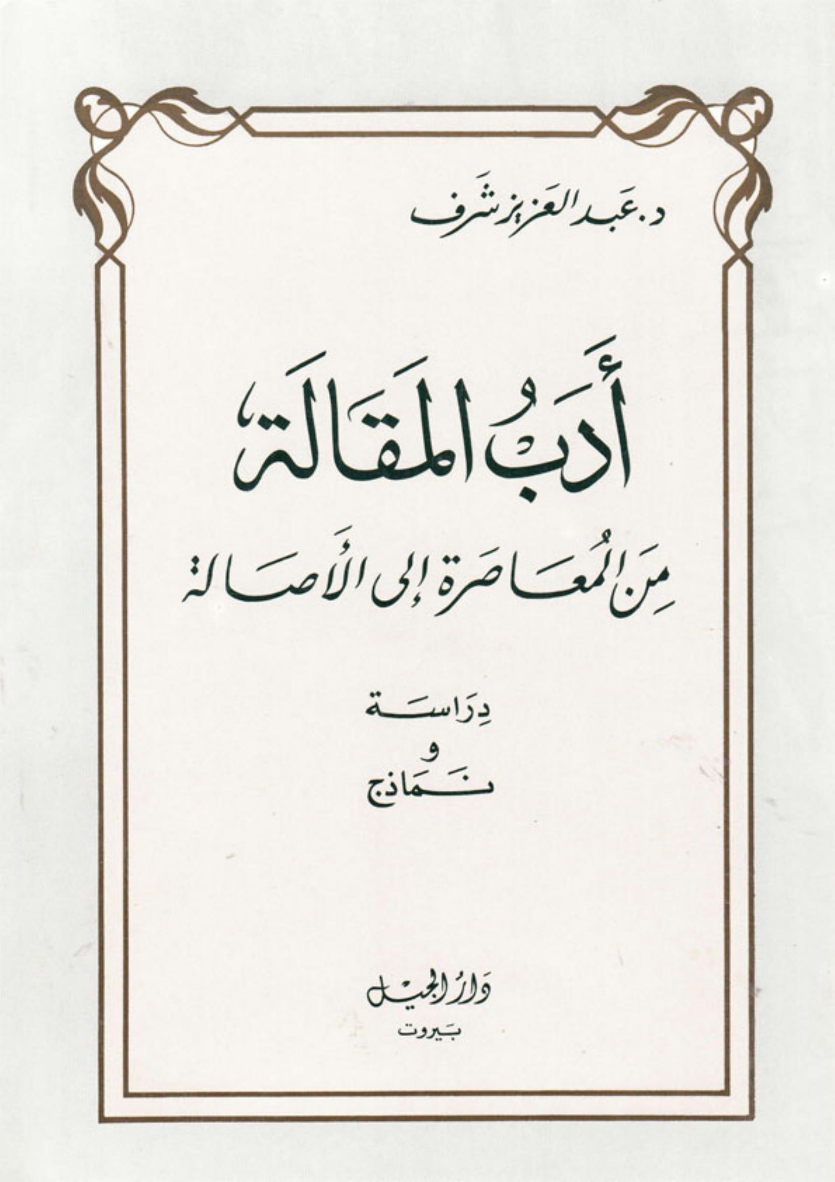 عبد العزيز شرف (2000). ادب المقالة من المعاصرة الى الاصالة (ط.1) . دار الجيل;