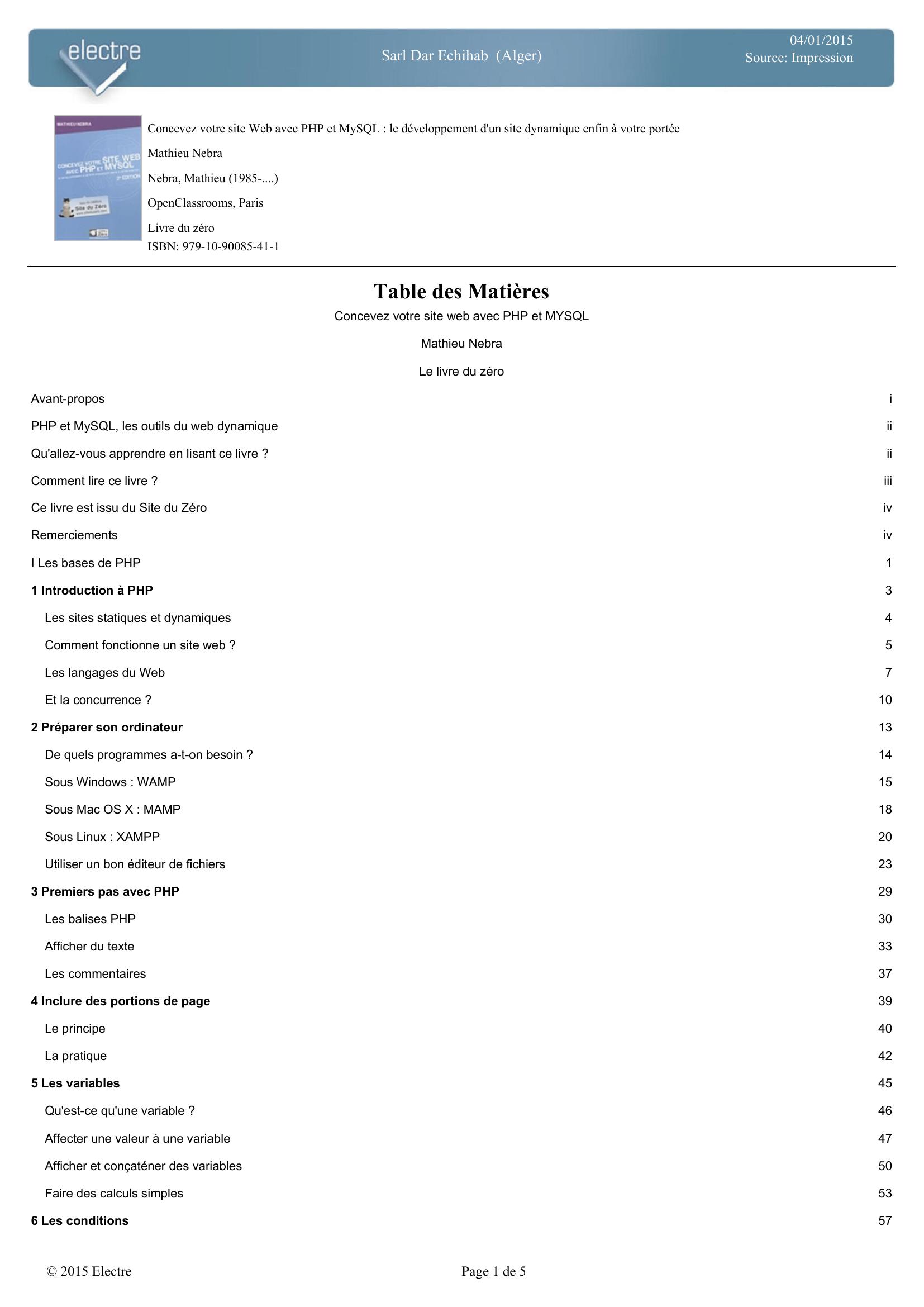Mathieu Nebra (2013). Concevez votre site Web avec PHP et MySQL (1.éd) . Le Livre De Poche;