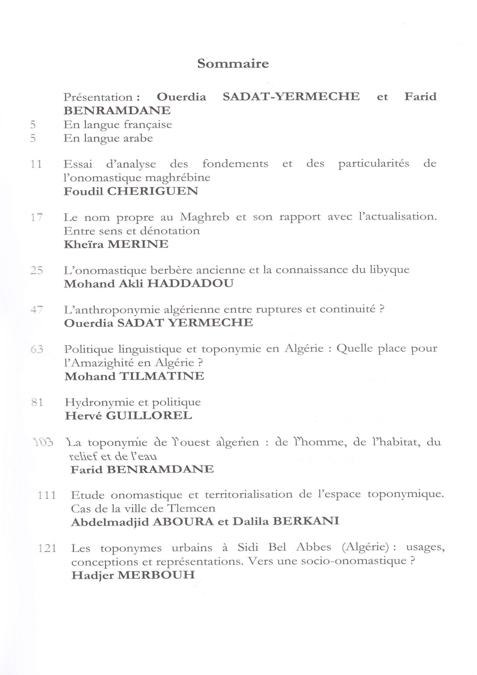 Ouerdia Sadat Yermeche (2013). Le nom propre maghrébin de l'homme ; de l'habitat du relief et de l'eau