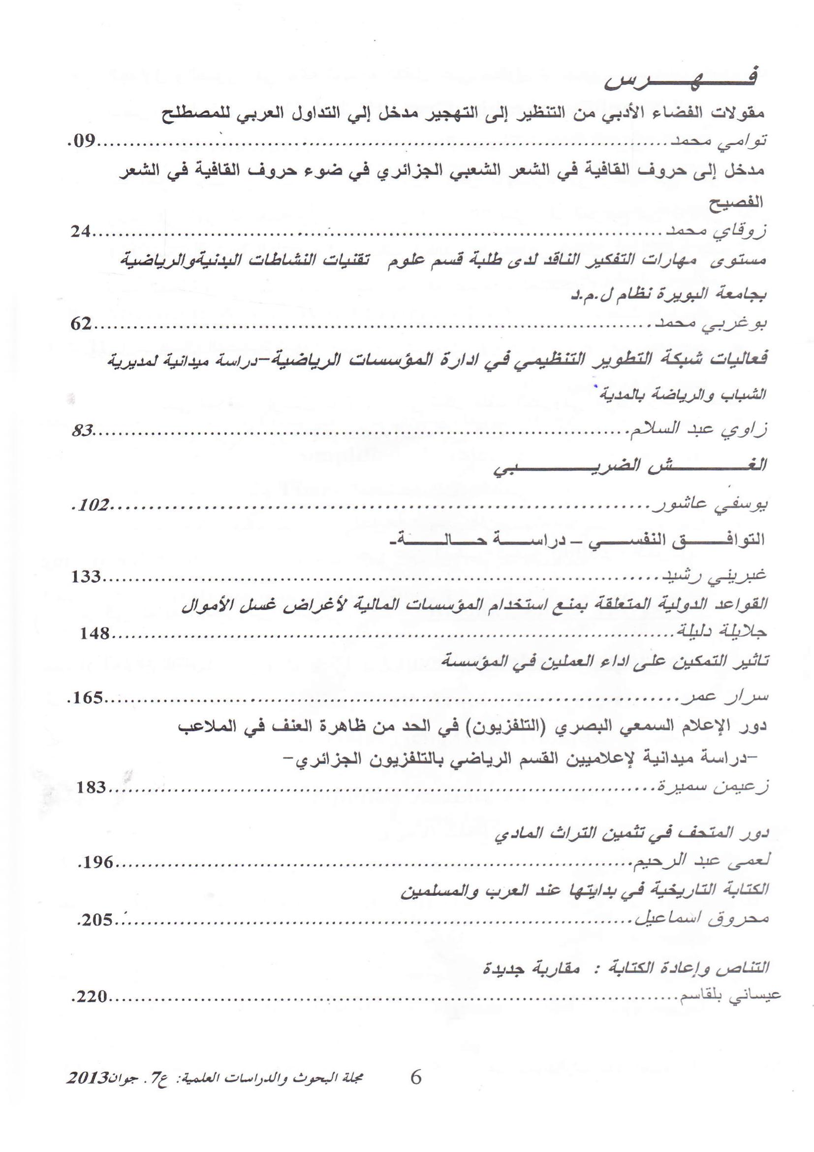 زغدار احمد (2013). مجلة الدراسات والبحوث والدراسات العلمية