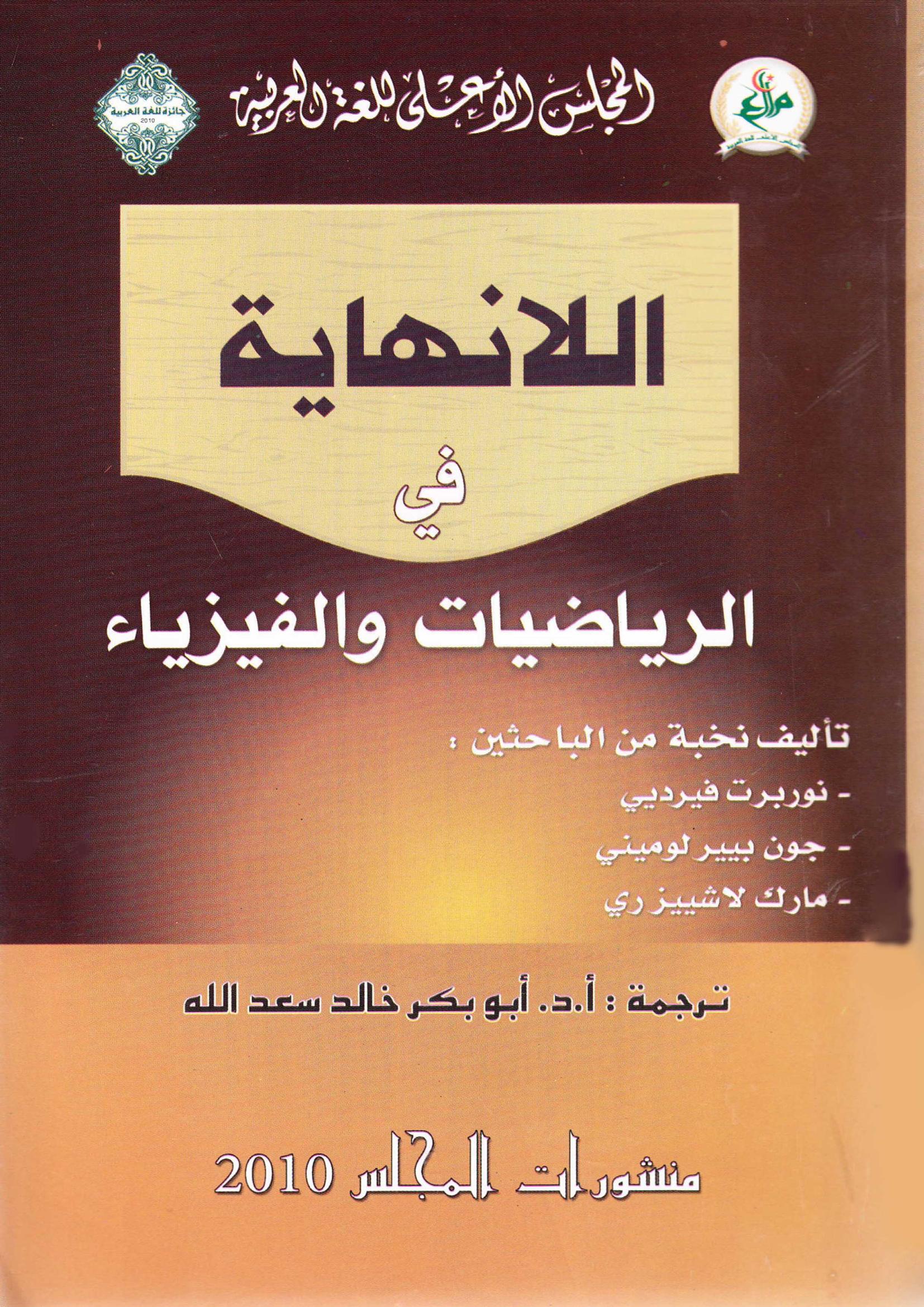 أبوبكر خالد سعد الله (2010). اللانهاية في الرياضيات والفيزياء (ط.1) . المجلس الأعلى للغة العربية;