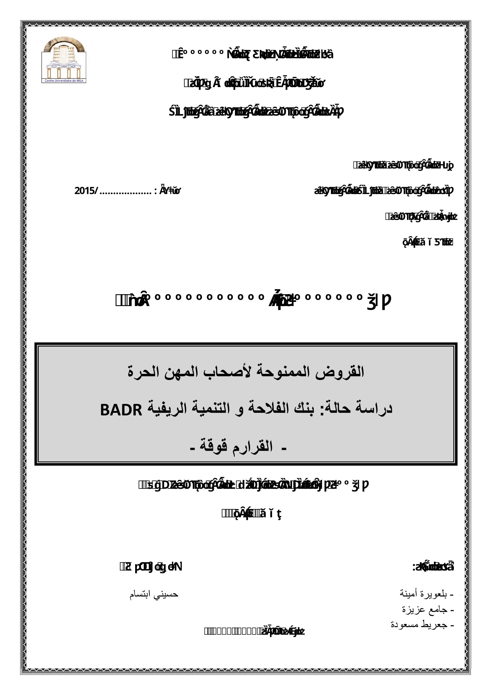 بلعويرة أمينة & حسيني ابتسام(مشرفا) (2015). القروض الممنوحة لأصحاب المهن الحرة : دراسة حالة بنك الفلاحة والتنمية الريفية BADR-القرارم قوقة.