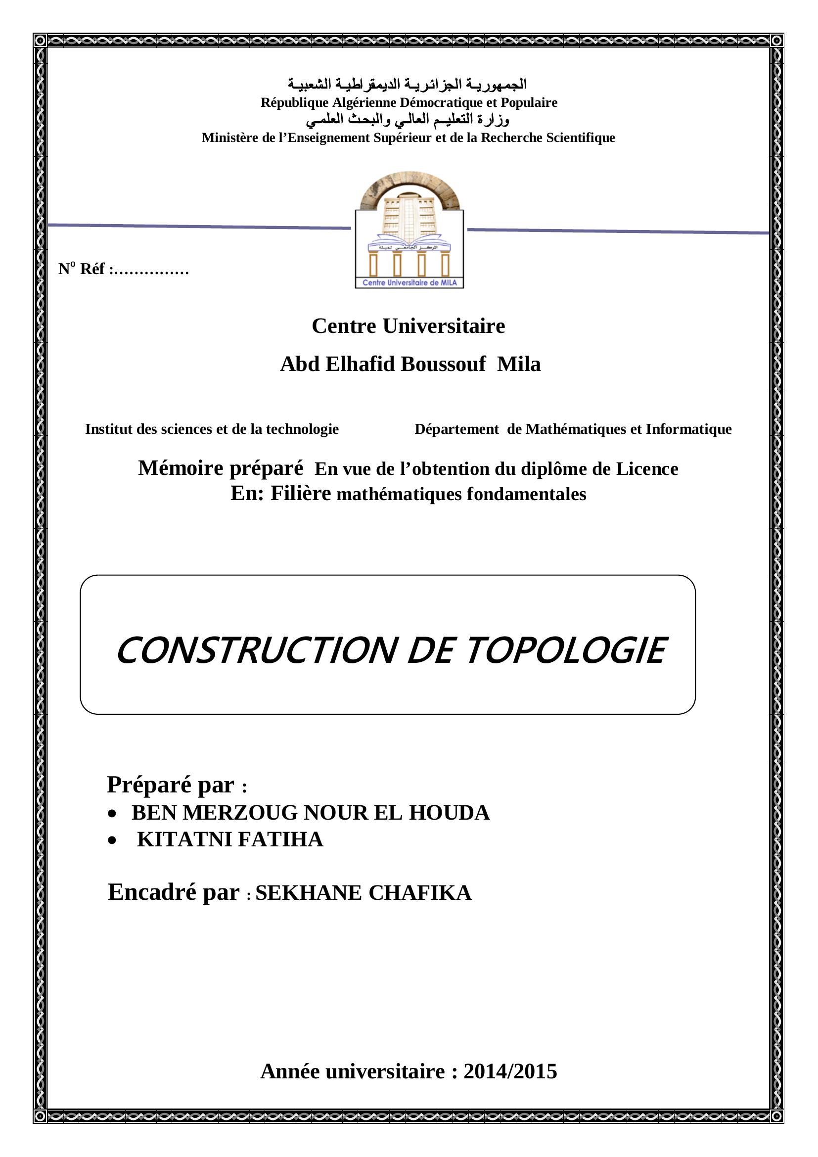 Benmerzoug Nour El Houda (2015). Construction de topologie.