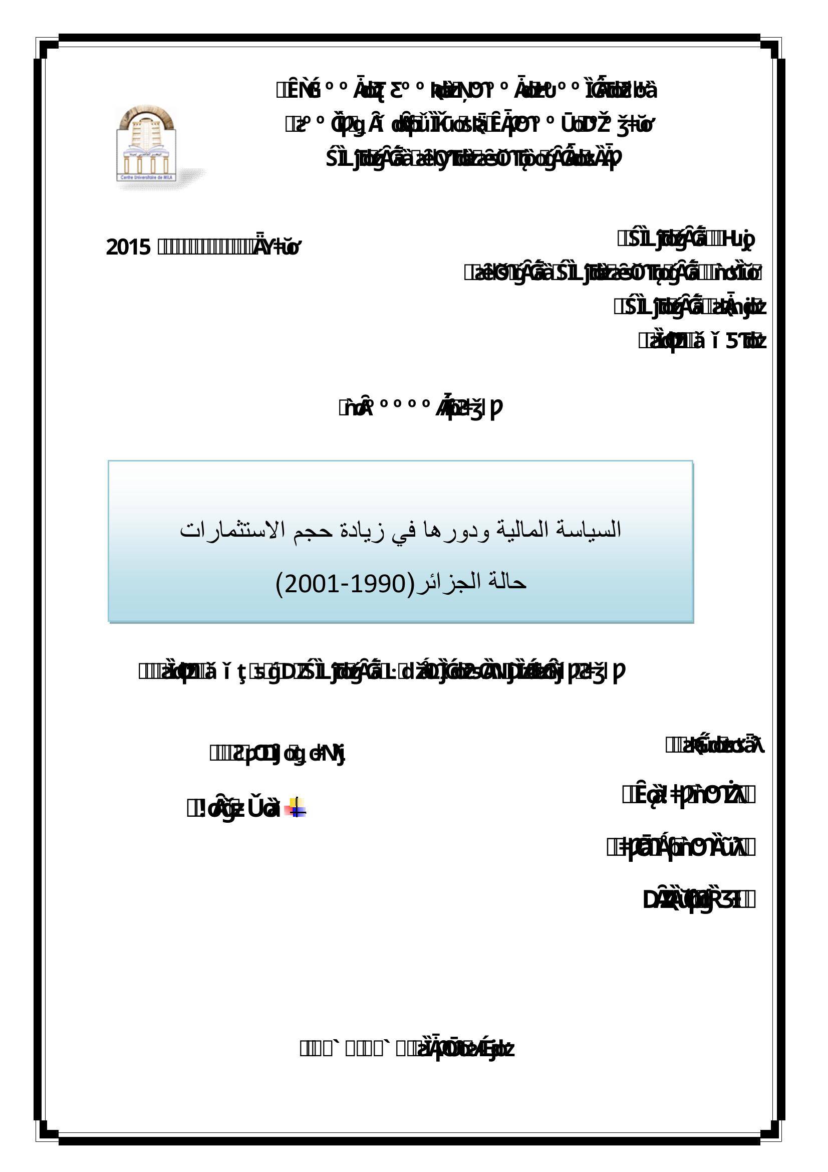 بلمهبول أحلام & واضح فواز (مشرفا) (2015). السياسة المالية ودورها في زيادة حجم الإستثمارات حالة الجزائر(1990-2001).