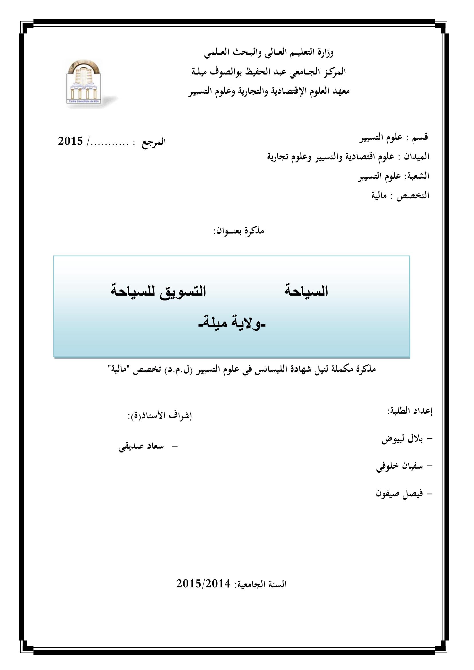 لبيوض بلال & صديقي سعاد(مشرفا) (2015). دور وكالات السياحة والأسفار في التسويق للسياحة بالجزائر ولاية ميلة.