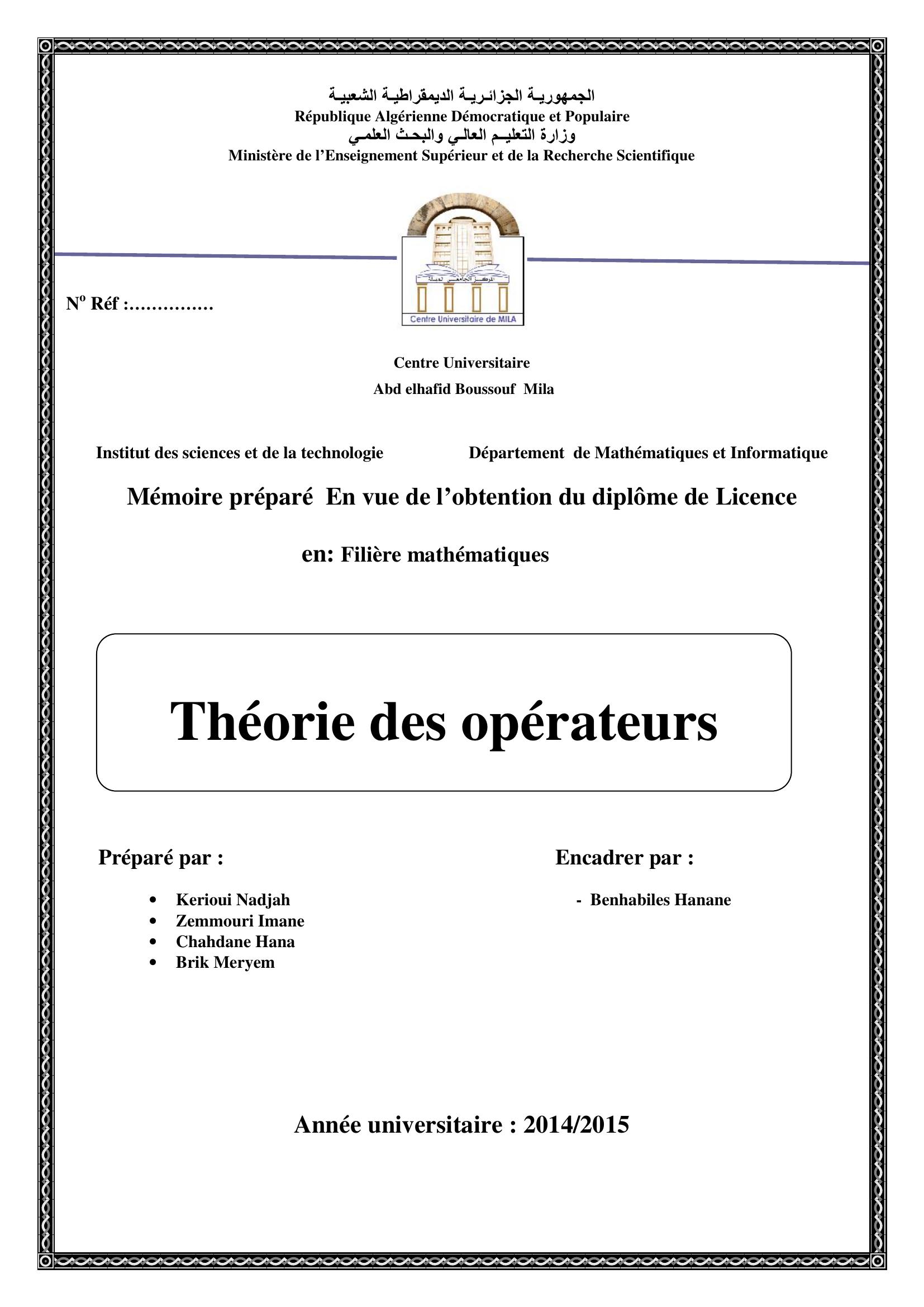 Kerioui Nadjah & Benhabiles Hanane( encadreur) (2015). Théorie des opérateurs.