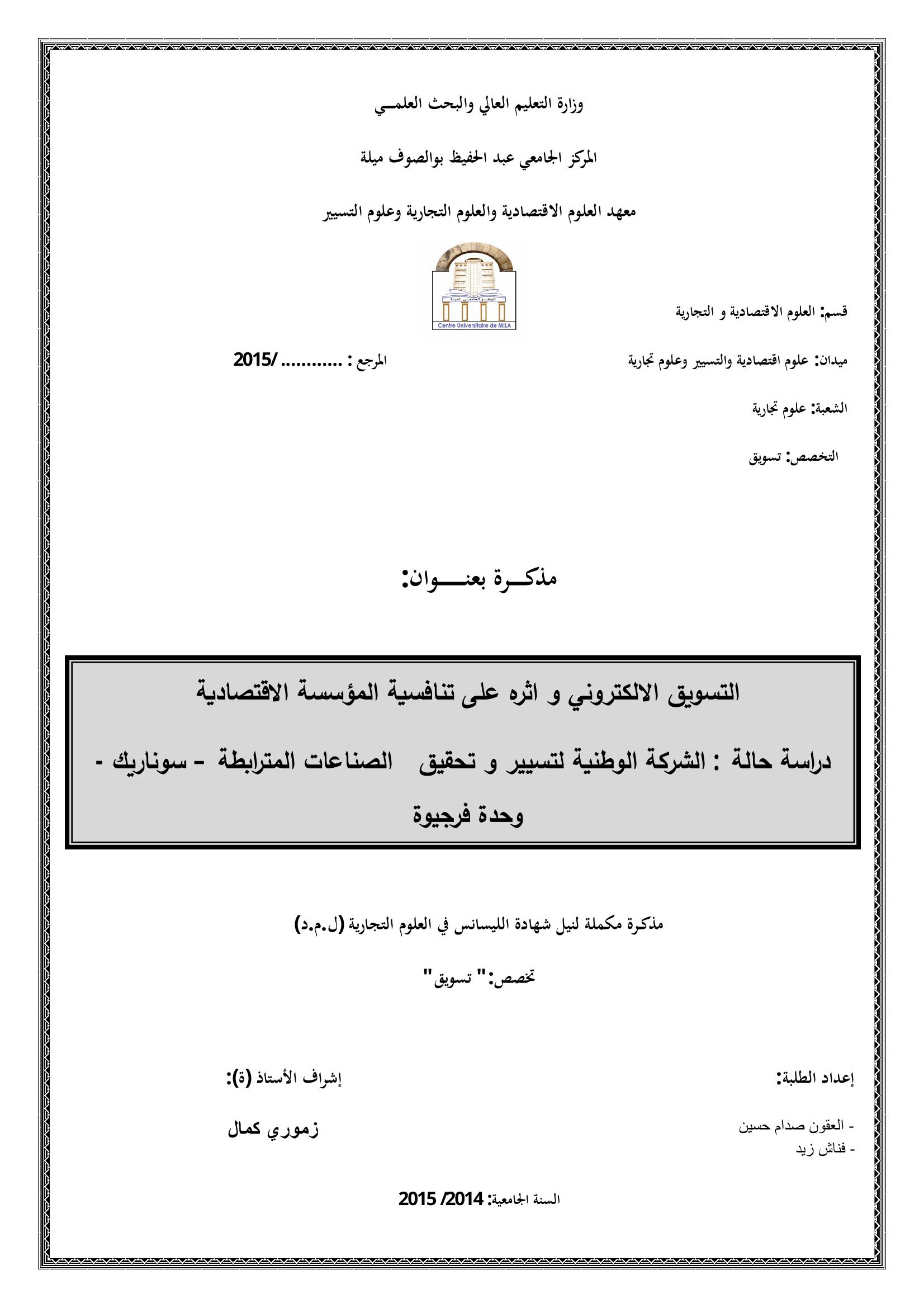 العقون صدام حسين & زموري كمال (مشرفا) (2015). التسويق الإلكتروني وأثره على تنافسية المؤسسة الإقتصادية.