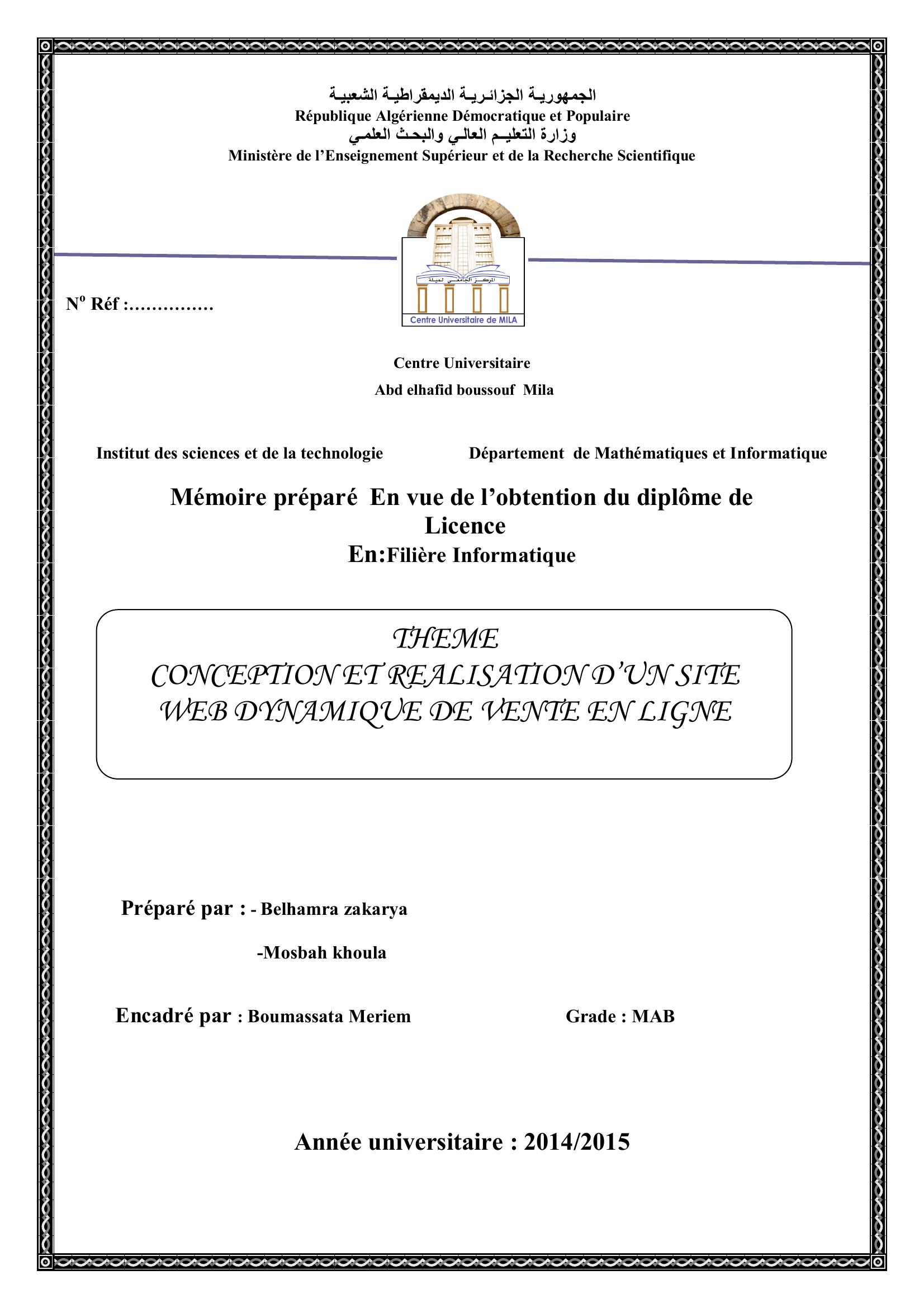Belhamra Zakarya & Boumassata Meriem encadreur (2015). Conception et realisation d'un site web dynamique de vente en ligne.