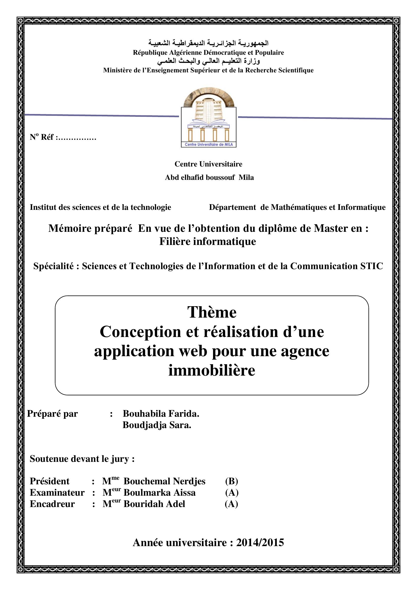 Bouhabila Farida (2015). Conception et réalisation d'une application web pour une agence immobilière.